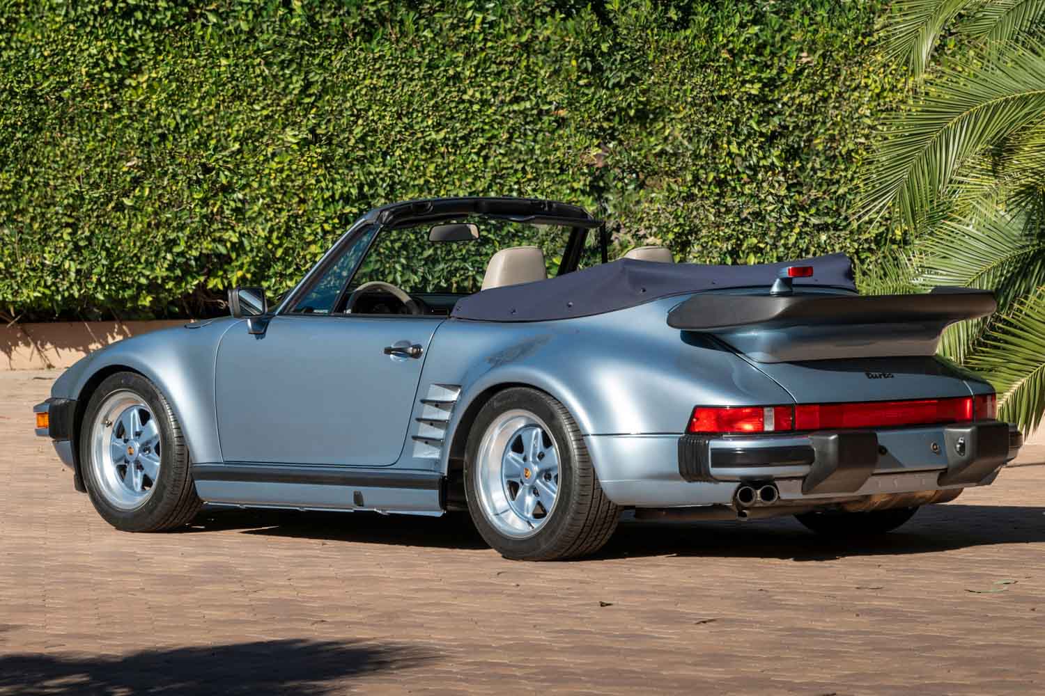 今回RMサザビーズのマイアミオークションに出品された911ターボ フラットノーズ カブリオレは、618台のアメリカ仕様の中の1台。ボディがラグジュアリーかつ流麗で、さらに1989年モデルでは50台しか存在しないカブリオレであることも注目のポイントだ。個性的なボディカラーは、メルセデス・ベンツ・ダイヤモンドブルー・メタリックと呼ばれる。