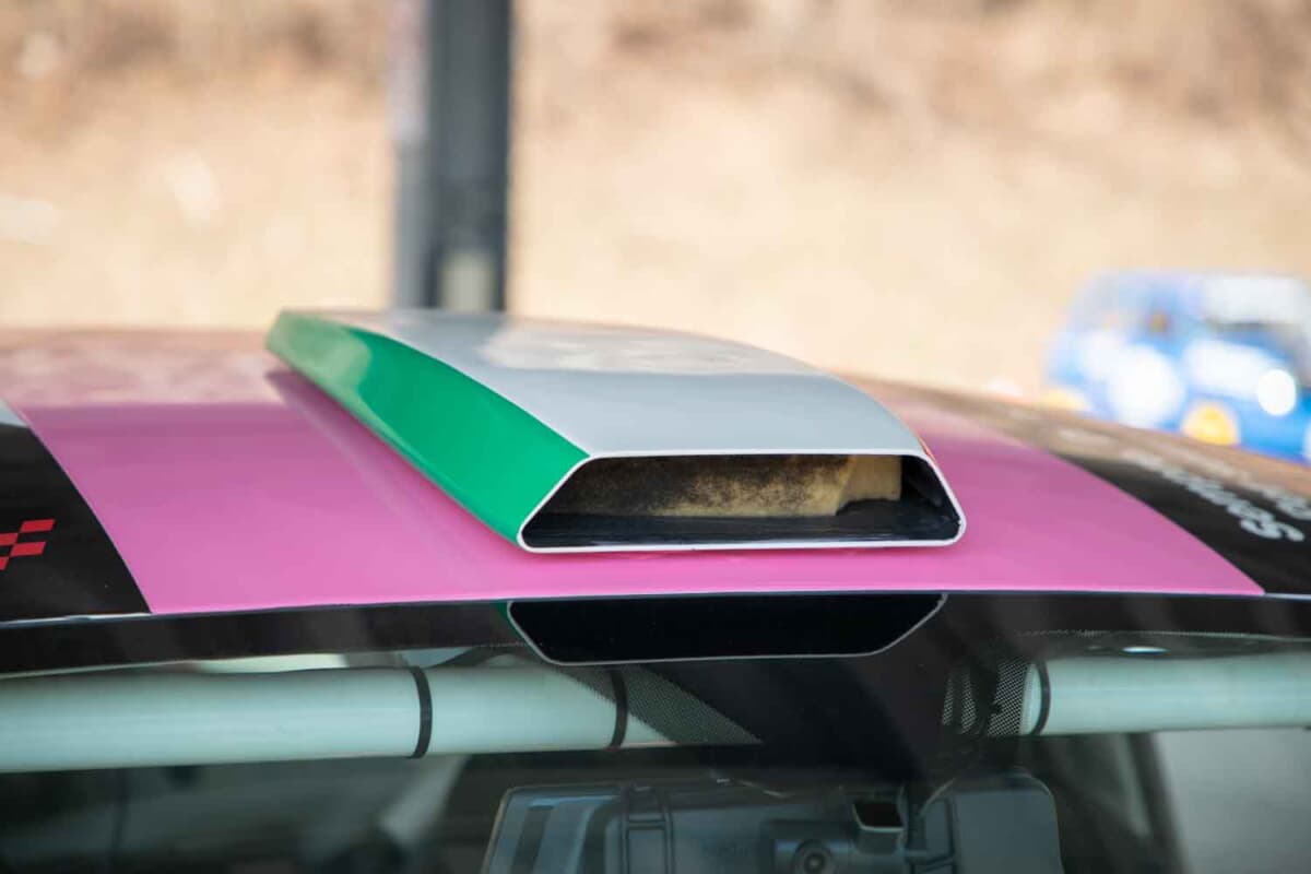 • アバルト500 R3T:ルーフには車内吸気用のエアダクトが備わる