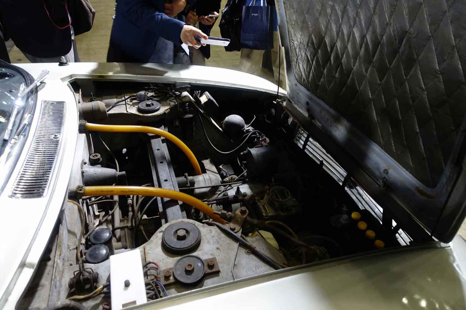 そもそもこのクルマ、1度だけ広島で展示された後は、長くマツダの倉庫で眠っていたそうである。当時デザインしたジウジアーロが日本にやってくるということで、その縁からこのクルマを引っ張り出したようだ。だから展示するにあたり、それなりにマツダも手を入れたようだが、当時マツダの首脳陣やデザイン陣が感じた通り、60年以上経った今でも、その美しさには息をのむ。