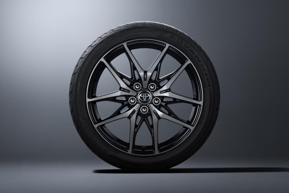 • トヨタ カローラ クロス GRスポーツ:YOKOHAMA ADVAN FLEVAのタイヤ(225/45R19)と専用のアルミホイール(19×7.5J)を装着する