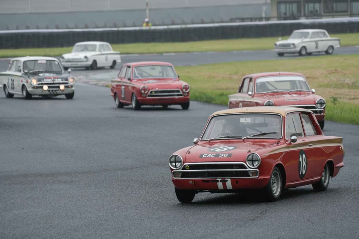 今回はさらに、ロータスおよびフォードのコルチナをフューチャーしたワンメイクレース“グリーンフラッシュ トロフィー”も行われるということもあり、訪れた見学者のコルチナもパドックの特別コーナーに展示された。シリーズによる細部の違いや、レース参加車両それぞれのモデファイなどを見比べることができた。さらには、残存数の少ないエステートモデルも見られるなど、またとない機会に多くの人たちが熱心に見学していた。