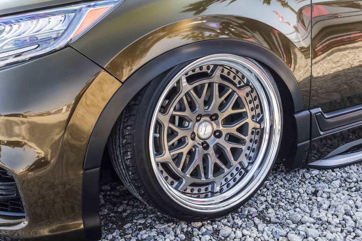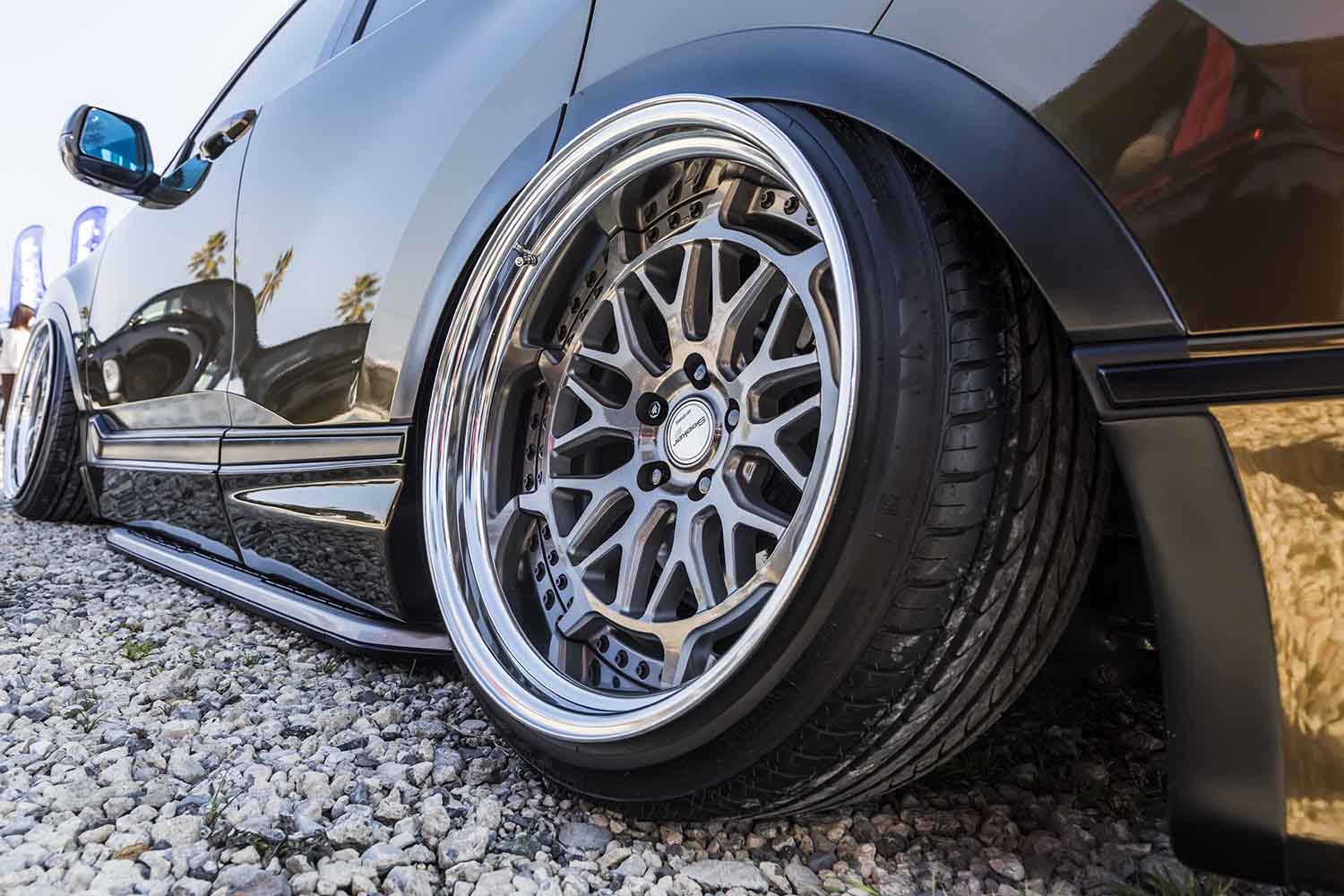 前後ともにスペーサーなしでホイールのリップにちょうどフェンダーに刺さる絶妙なスタンスを実現。ショー会場でも注目度はかなり高く、多くのギャラリーの注目を集めていた。