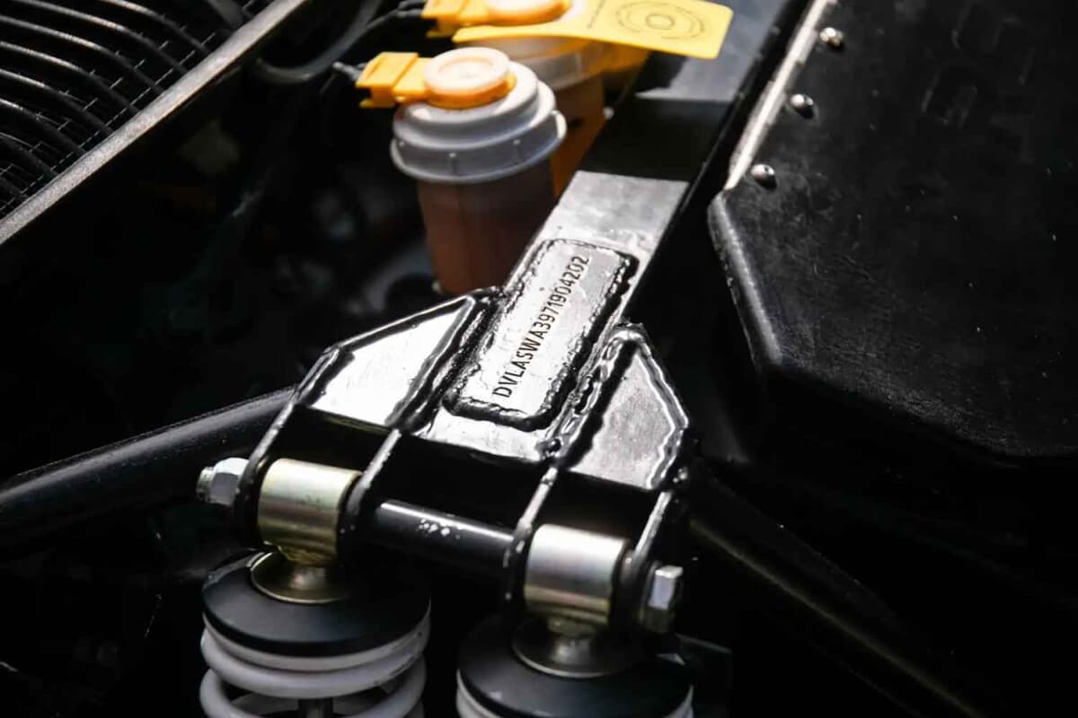 250psを発生するコスワース開発の1803cc 4気筒ツインカム16V「BDT」に、「ギャレットT03/04」ターボチャージャーを組み合わせて、ドライバーの背後に搭載している。スイッチ可能な4輪駆動システムに軽量コンポジットボディを採用。そして、ラリー畑でキャリアを重ねたジョン・ウィーラー技師と、F1やグループCスポーツカーでも輝かしい実績を残したトニー・サウスゲートが共同考案した、ハニカム構造のアルミ/スチール/カーボンファイバー製センタータブを中心としたシャシーを備える。グループB時代でももっともエクストリームなラリーカーのひとつとなった。