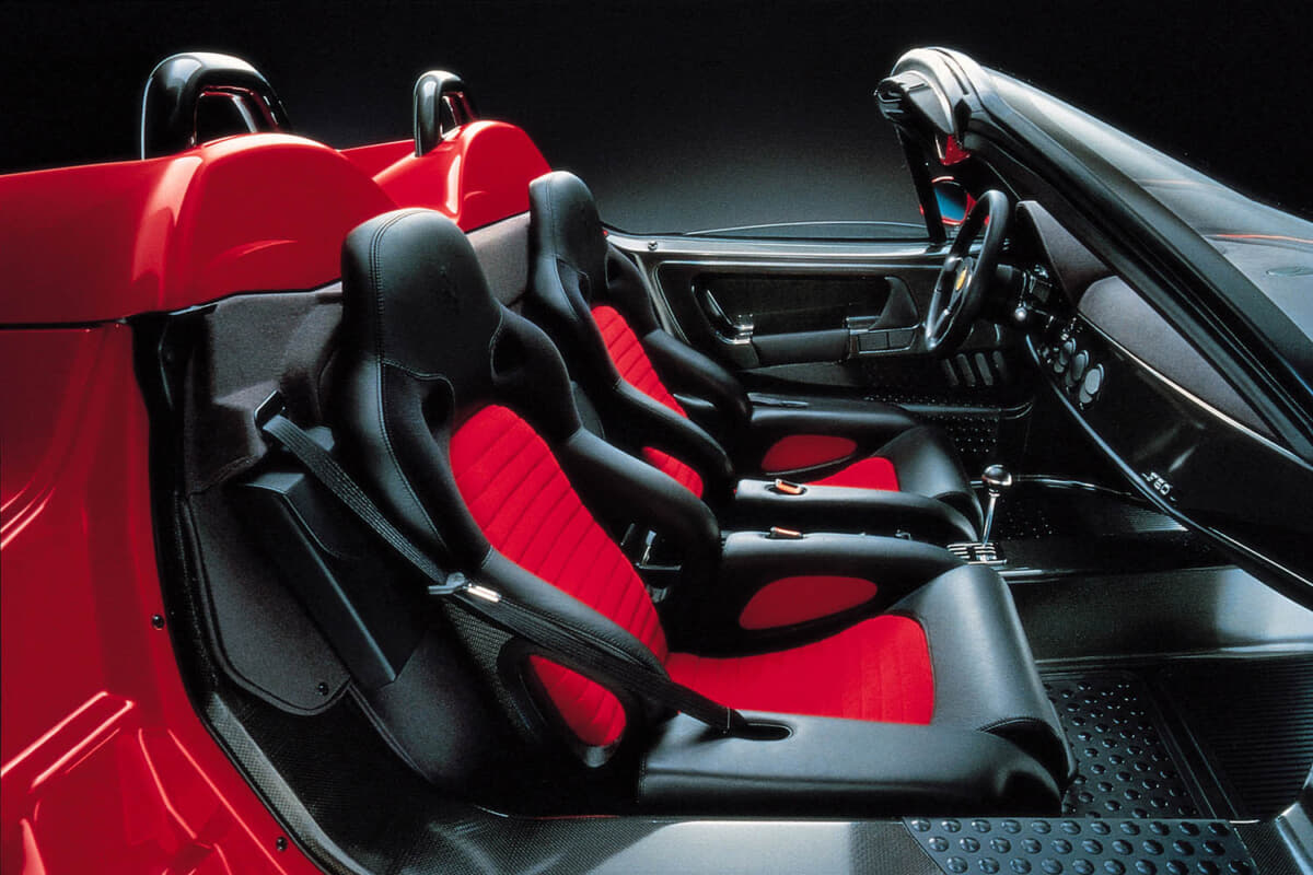 ルーフは脱着式のタルガトップを採用。ABSやパワーステアリングを持たないことで、よりレースカーに近い純粋な走行感覚を提供する仕様となっていた。生産台数は349台に限定されており、これは「想定された需要より1台少なく」というフェラーリの哲学に基づくものである。