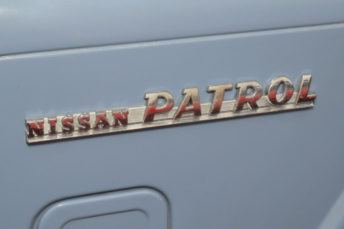 鈴木さんのパトロールはもともとは消防署で使われていた個体だったそうで、現在車体についている「NISSAN PATROL」のエンブレムのほかに「NISSAN FIRE PATROL」のエンブレムも大切に保管している。前輪ハブの突起が車幅を超えないようにフロントフェンダーに装着された鰹節状のオーバーフェンダーなどもこの年式の特徴。パーツの供給やメンテナンスに関しては、知り合いに元日産のメカニックがいて、何とかなっているという。