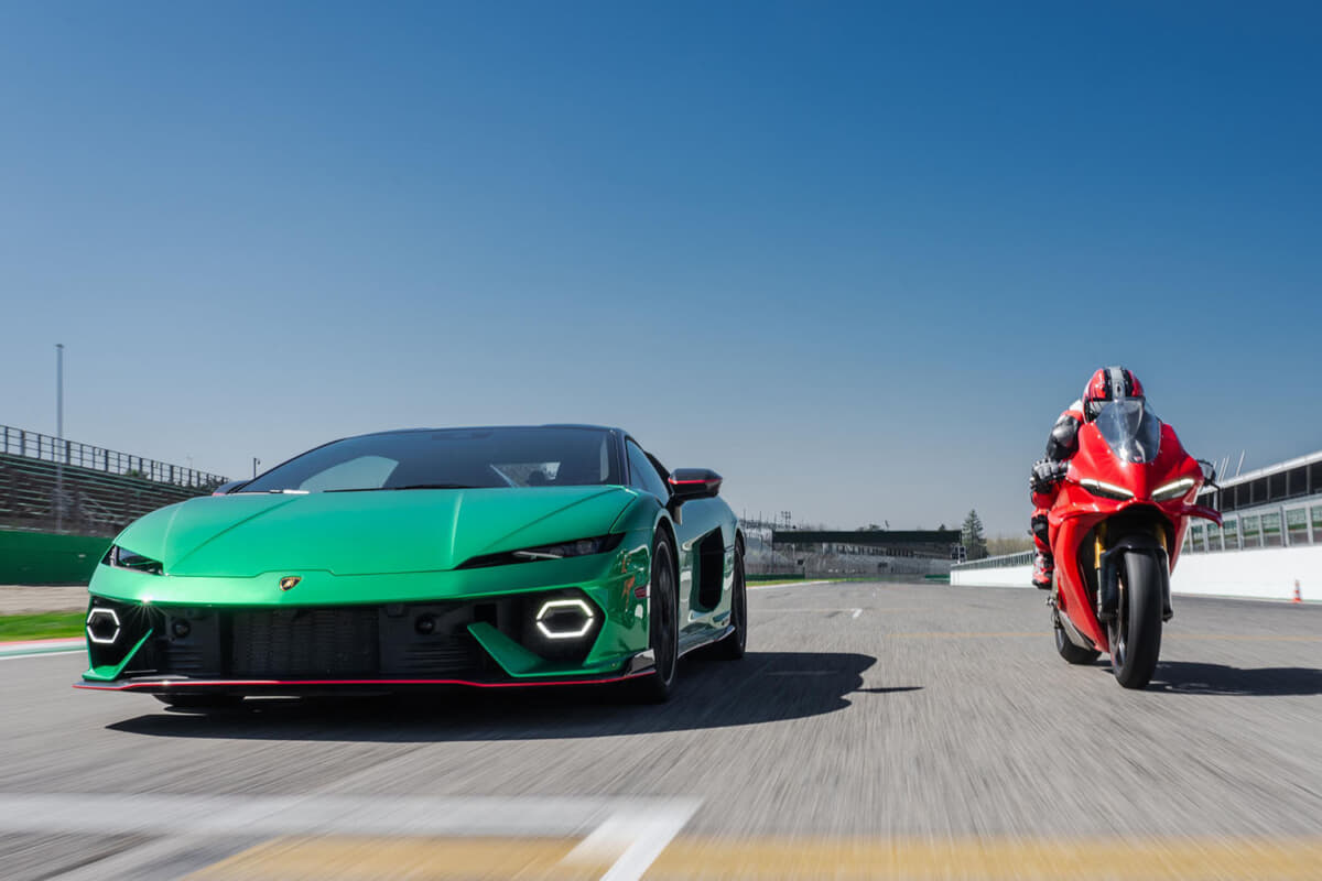 ランボルギーニは、「テメラリオ」とドゥカティ「パニガーレV4」による2台のマシンがサーキットで直接対決する動画を公開しました。アドレナリン全開のスリリングなドラッグレースに登場したマシンについて紹介します。