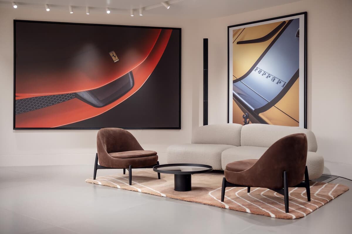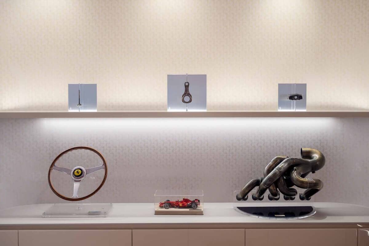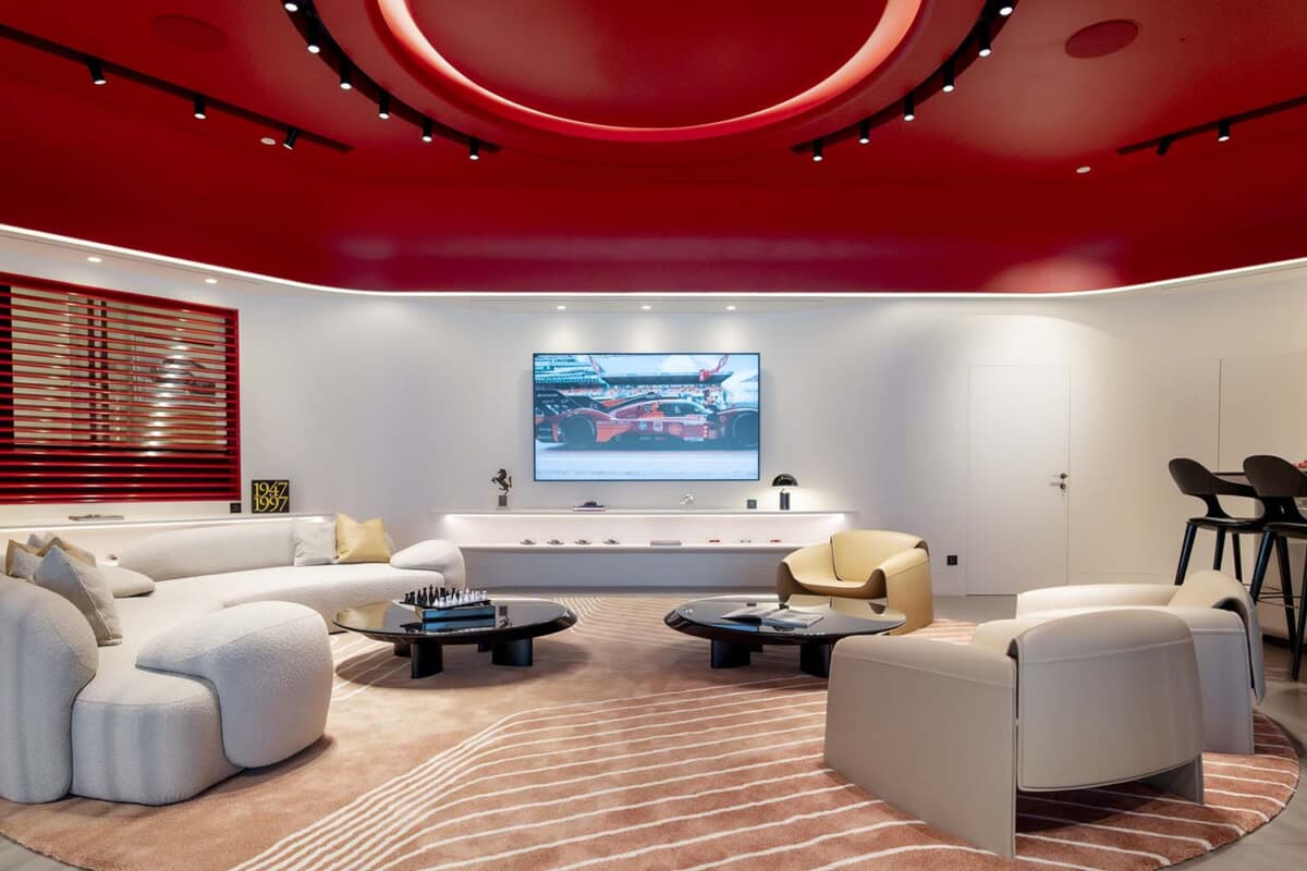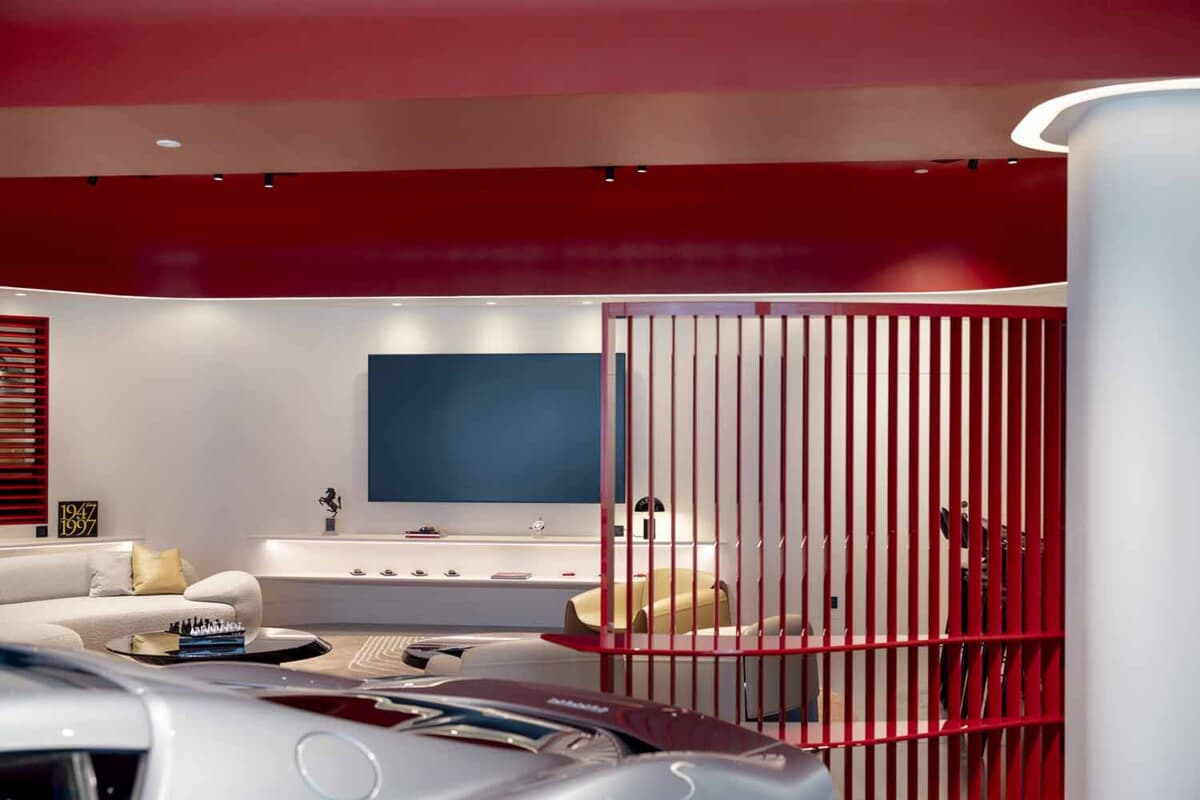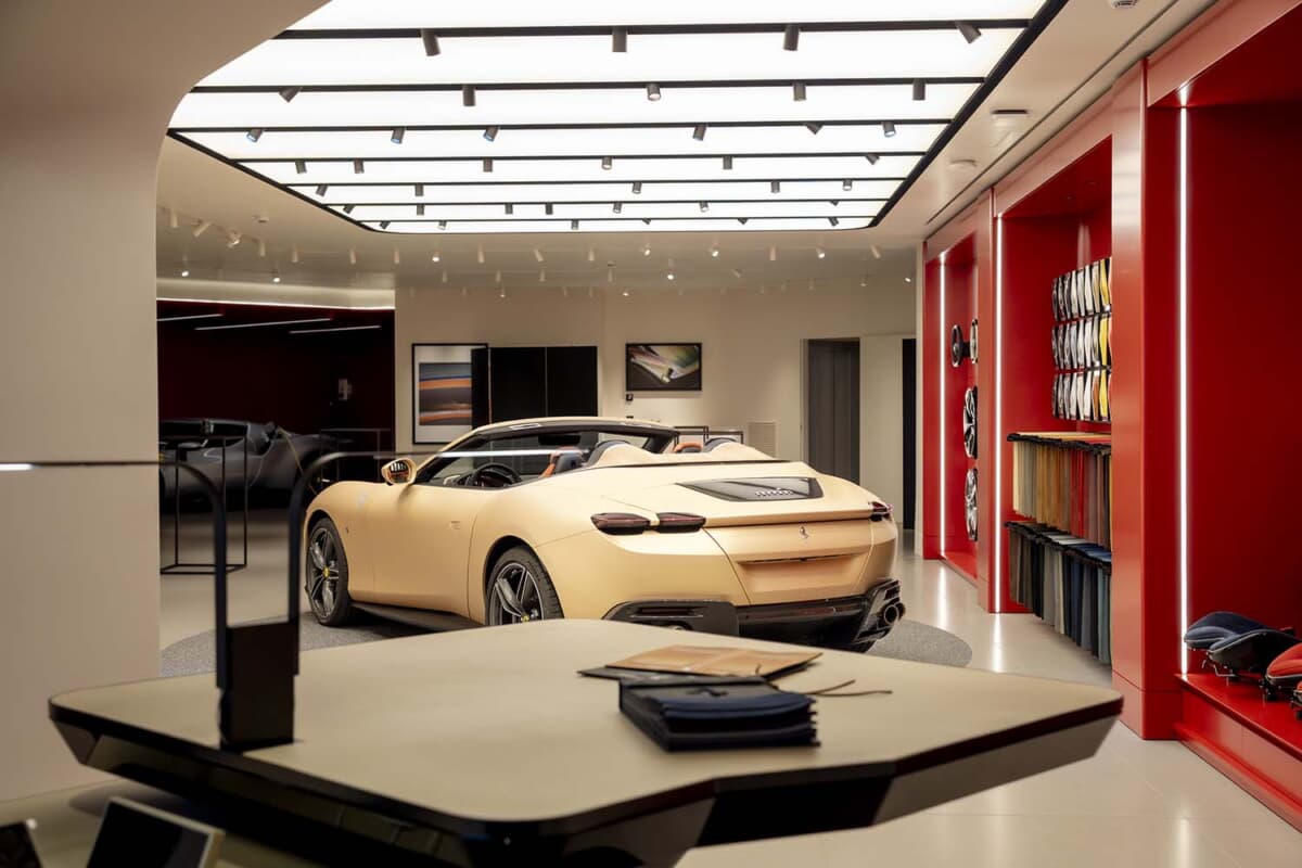 新しいショールームのデザインコンセプトには3つの柱が存在する。第1は「唯一無二性」である。ショールームは、パフォーマンス、革新性、デザイン、クラフツマンシップといったフェラーリの中核的価値観を通じて、ブランドの本質を体現する空間を提供する。ブランド、ヘリテージ、コミュニティに特化した各エリアは、来場者がフェラーリ・コミュニティとつながり、レースの世界における卓越した専門性を体感できるよう設計されている。