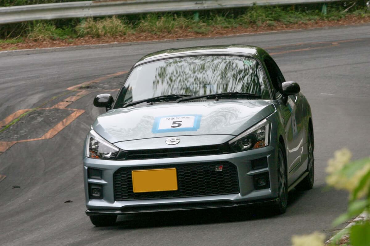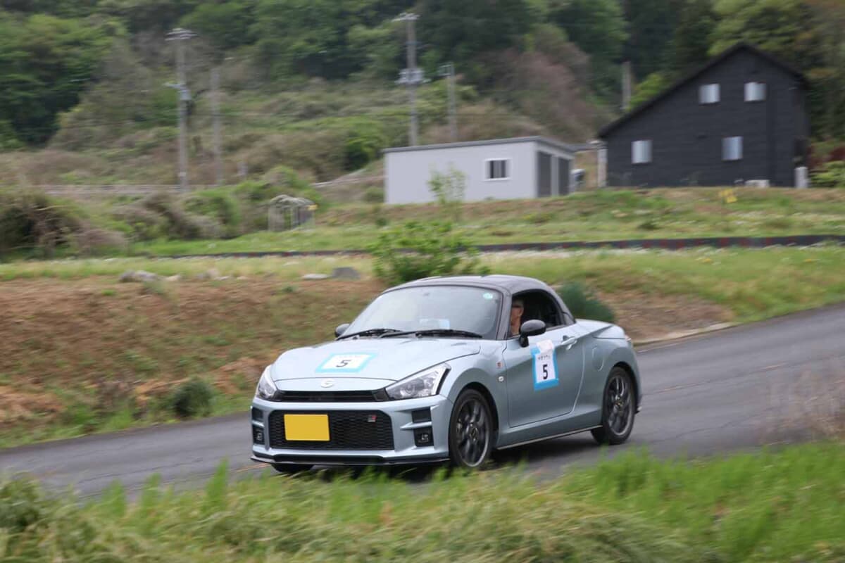 デイラリーシリーズは、自分が普段乗っているどんなクルマでも参加できるので、走りを楽しむ愛車を所有する人たちにはたまらないイベントとなっています。このラリーは、速さを競うものではなく、主催者が決めた指定速度で計測区間を走行して、突如現れるチェックポイントを規定タイムで通過しなければなりません。そこにダイハツ「コペンGRスポーツ」の姿がありました。