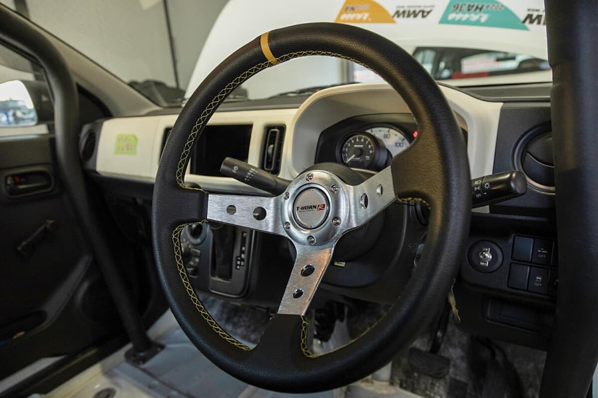 マシンに関するエピソードもちょっと面白い。なんと、このHA36型アルトは、佐久間の祖父が乗っていたクルマなのだ。それを譲ってもらい、フルノーマルの状態からわずか1週間でレースマシンに製作したという。走行距離は3万6000kmで、ボディのコンディションも上々。ただし、レーダーブレーキサポートや横滑り防止装置など、スポーツ走行ではマイナスになる装備も付いている。それらのキャンセルや作動させない走らせ方が、今後のテーマとなりそうだ。