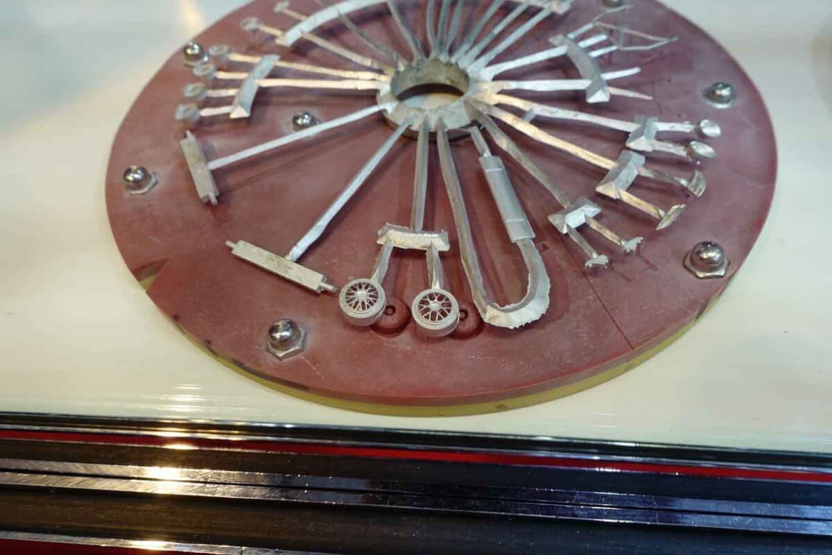 また、サイズが1/64ともなると窓枠などがクルマとサイズ感が合わないことが多く、それゆえHOサイズ(3.5mmスケール)のモデルはオモチャっぽく見えてしまう。メイクアップではここでも拘って、きわめて細いエッチングパーツで仕上げているので、高い実車感を維持している。