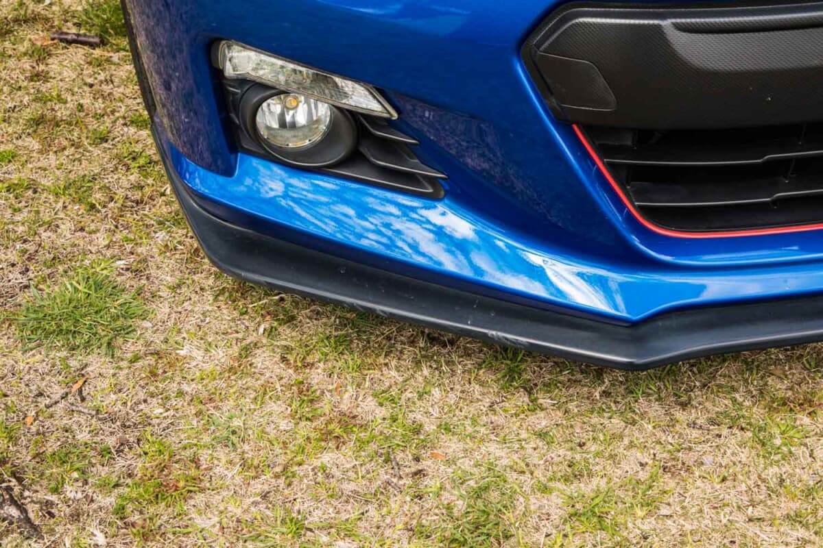購入時にSTIのフロントスポイラーやサイドスポイラーが装着されていたそうだが、リアサイドはあえて装着せず、純正エアロパッケージのリアスポイラーを装着している。気になるのはラジエータ開口部やリアのディフューザー上部に入っているピンク色のアクセントライン。2015年の限定車 BRZ tSに似ているのだ。これを“AKIさん”に聞いて見ると