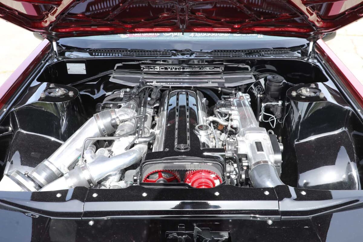 日本に逆輸入されたオリジナルのセリカ コンバーチブルGT-SはAT車しかなかったが、松田さんの愛車はレノマのシフトノブが付いたMT車である。これについて聞いてみると、じつは搭載されていた純正パワーユニット2.4Lエンジンではとにかくパワーが足りず、峠道を登ってくれない。走るたびにストレスを感じてしまうため、置き場にストックしていた部品取り車のトヨタ161型「アリスト」の2JZエンジンを載せることを決意。そのときにMT化させようと考え、本当はトヨタ80系「スープラ」用ゲトラグ6速ミッションにしたかったのだが、市場価格の高騰により断念。仕方なく5速MT仕様で、走りを満喫できる1台に仕立て直した。