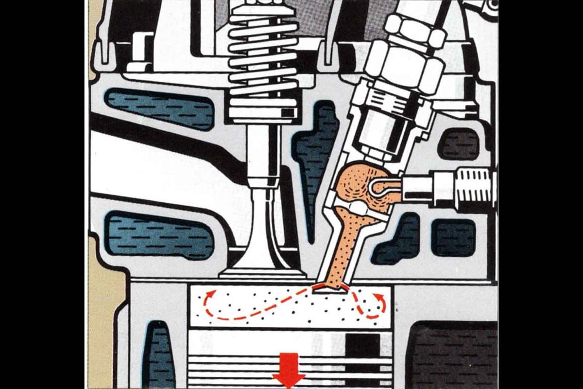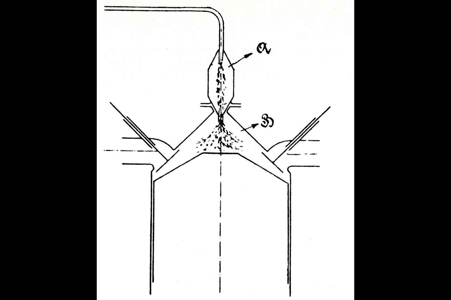 1909年、ベンツ社のチーフエンジニアであったプロスペル・ロランゲ(1876-1939年)が主燃焼室と予燃焼室に2分化した画期的な燃焼室形状を考案した。予燃焼室内に燃料を噴射し、着火性のよい混合気を形成して圧縮点火。燃焼する混合気は主燃焼室に入り、ここで空気を有効に使い燃焼を続ける。さらに予燃焼室式インジェクション・システムを開発し、特許を取得している。