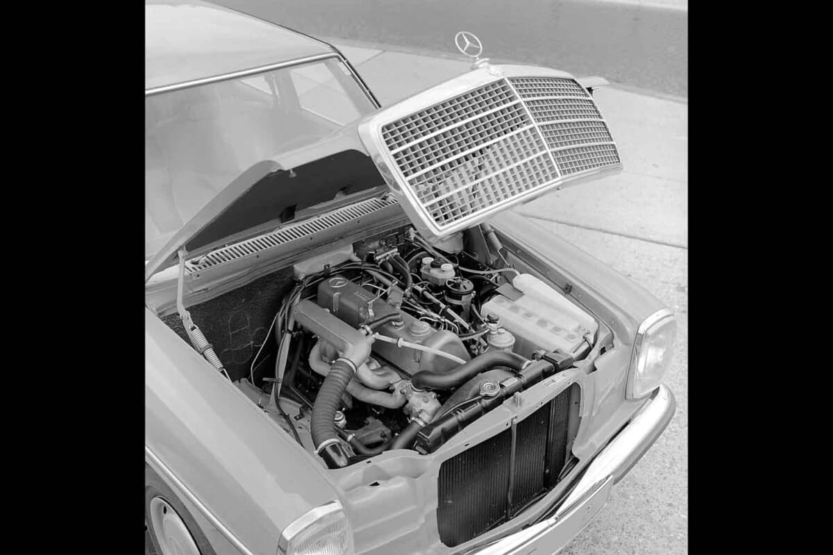 • メルセデス・ベンツ 240D 3.0ボディに「画期的な5気筒3Lディーゼル・エンジン」を搭載したエンジンルーム