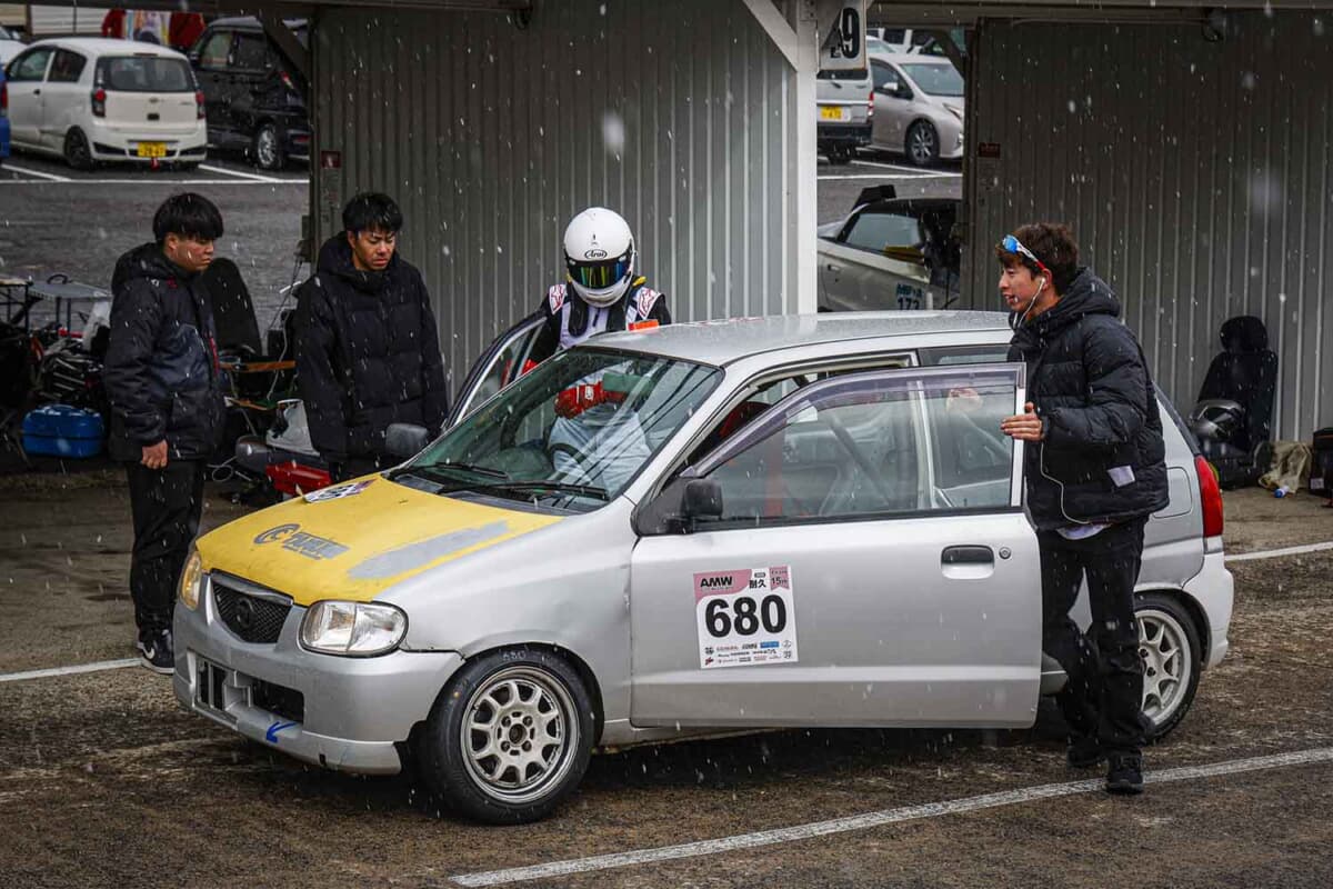 シリーズで唯一学生クラスが設けられている東北660耐久レースには、福島県にキャンパスを構える日本大学工学部の自動車部が、2015年12月13日の初開催からほとんど欠かさず参戦しています。年を追うごとにドライバーも代替わりして、2025年の初戦には川井柚、井戸川隼人、高岡威の3名が出場。東北660シリーズは耐久レースに限らず若い世代の参加が多いことで知られていますが、今回の日大チームは全員が19歳と20歳という、ひときわフレッシュな顔ぶれでほかの参加者たちを驚かせました。