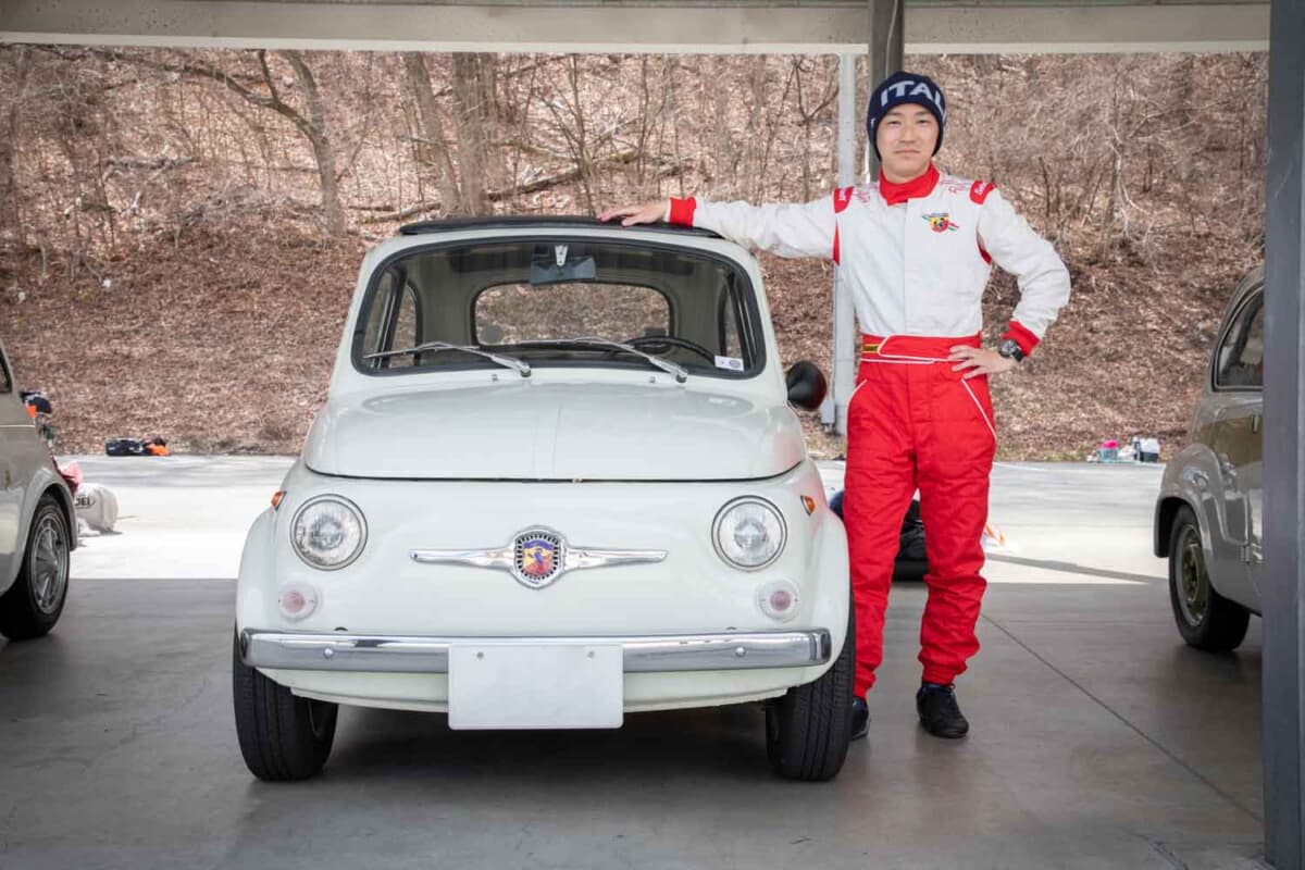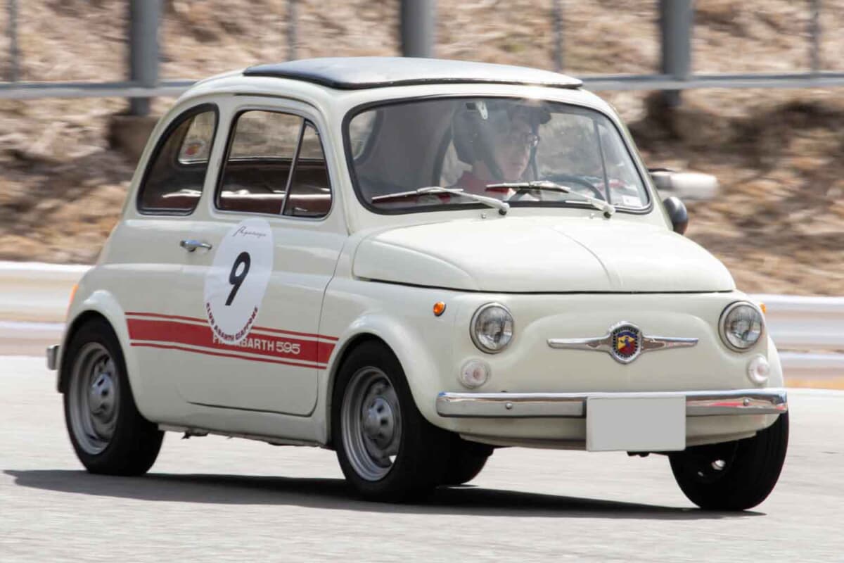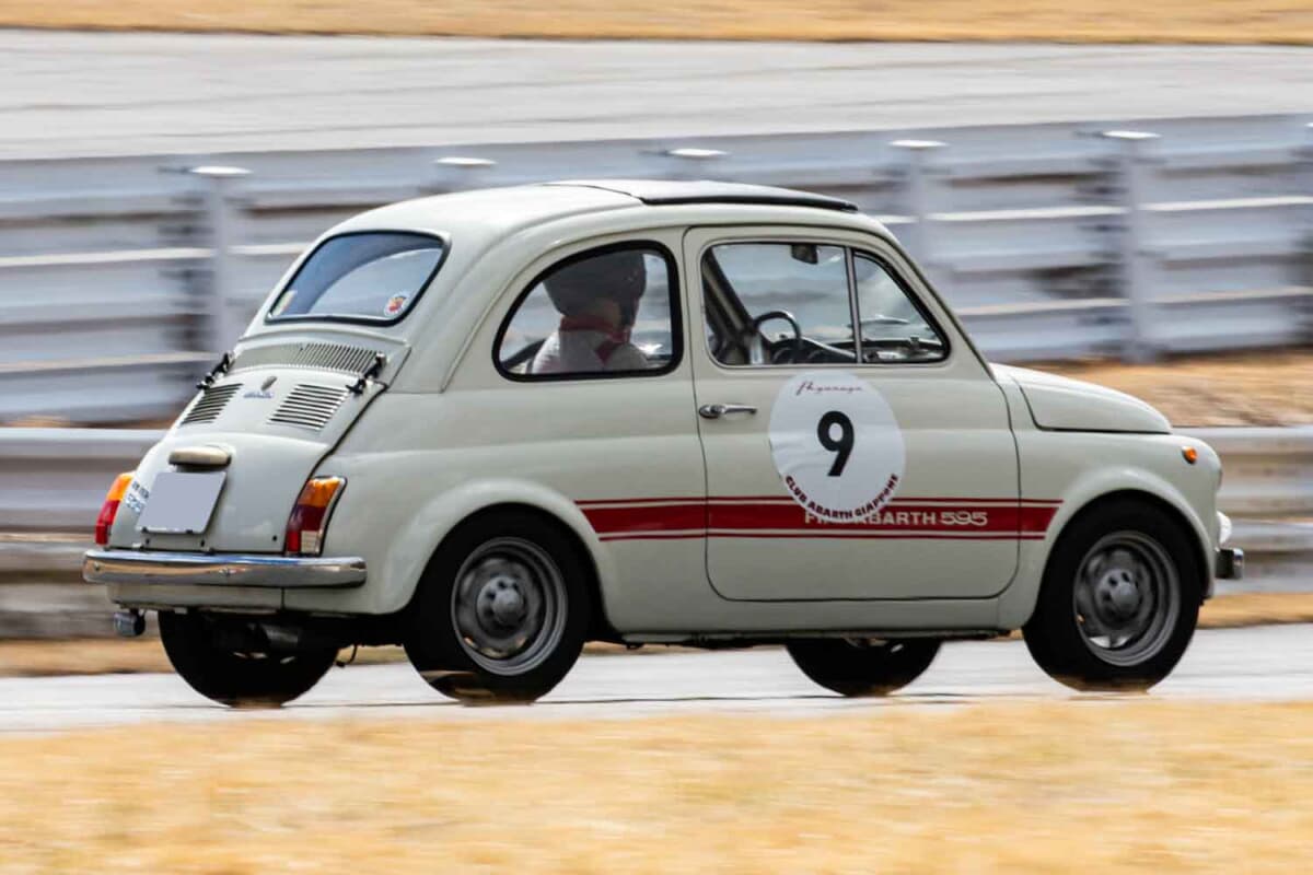 現行アバルトの「595」や「695」のルーツは、いわゆるルパン三世の愛車のチンクエチェントをベースにアバルトがチューニングしたモデルまでさかのぼります。当初はアバルト500としてリリースされ、1963年に登場したのがアバルト595で、翌年にはアバルト695も発売されました。今回は栄光の「フィアット アバルト」ブランドのクルマのなかでも、もっとも小さなモデルのひとつである「595エッセエッセ(SS)」とともにコースを快走していた若きオーナーさんから、お話しを伺うことができました。