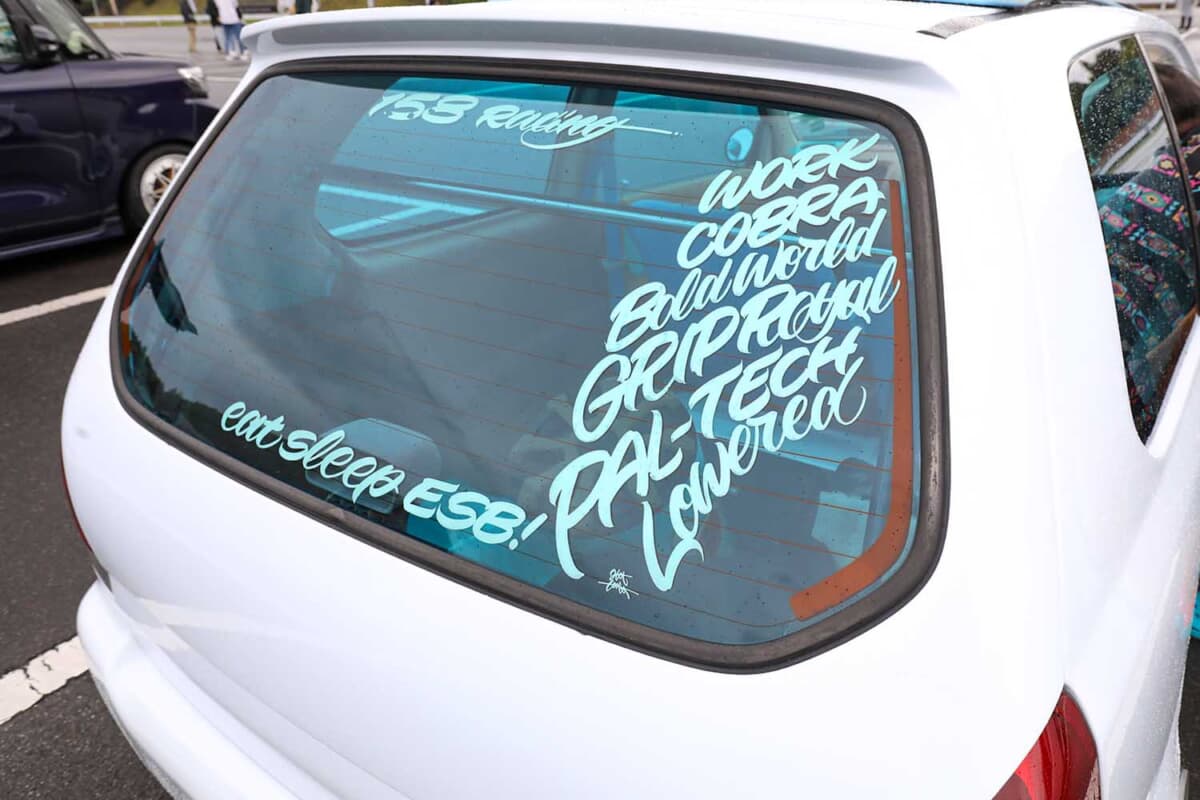 ユーロスタイルはボディキットを軸に考えられているが、カラーコーディネートでUSスタイルのアピール力を高めているのが特徴だ。そのため、あえてボディカラーはシンプルなホワイトを選び、ポイントカラーが目立つように工夫。ポップで明るい西海岸USスタイルを意識して、ホイールはパステルスカイブルーのワーク マイスターCRを履かせている。