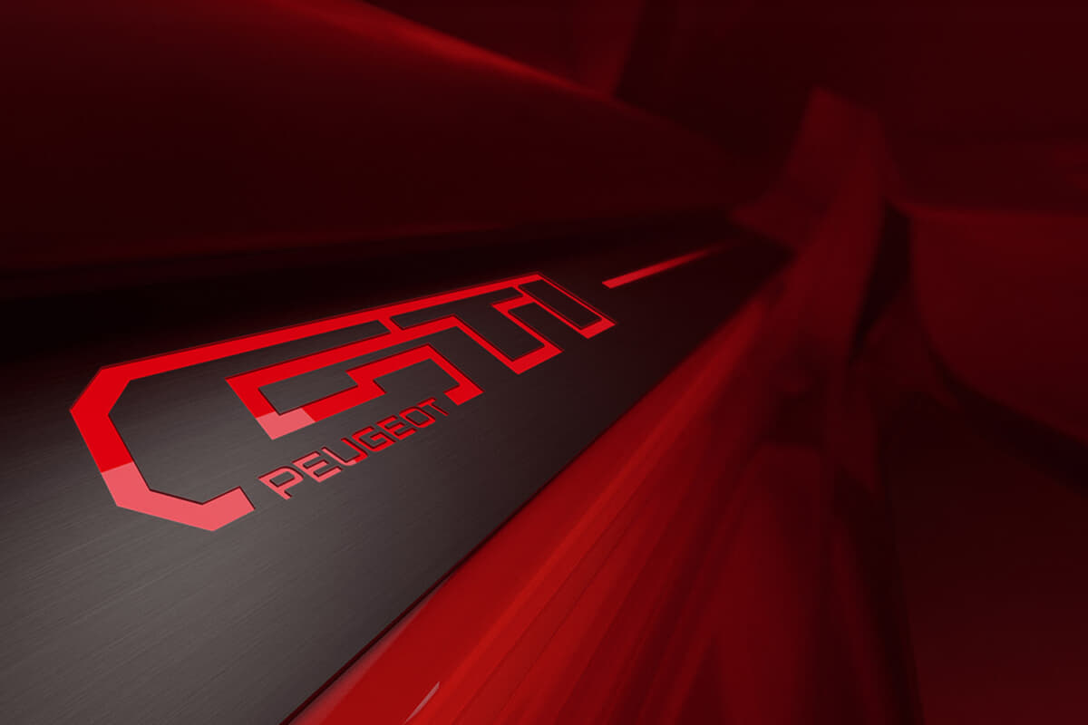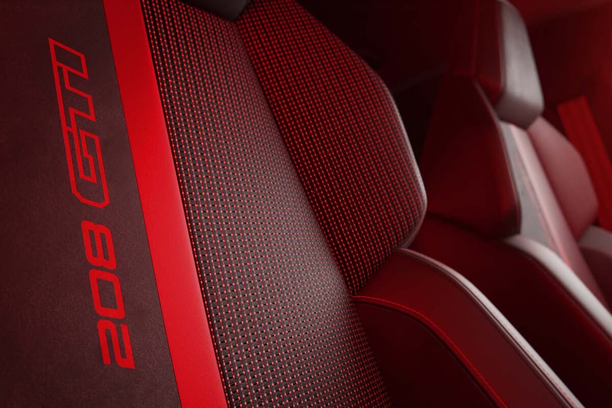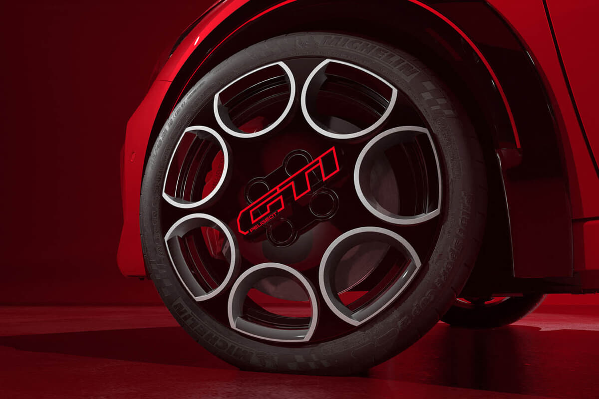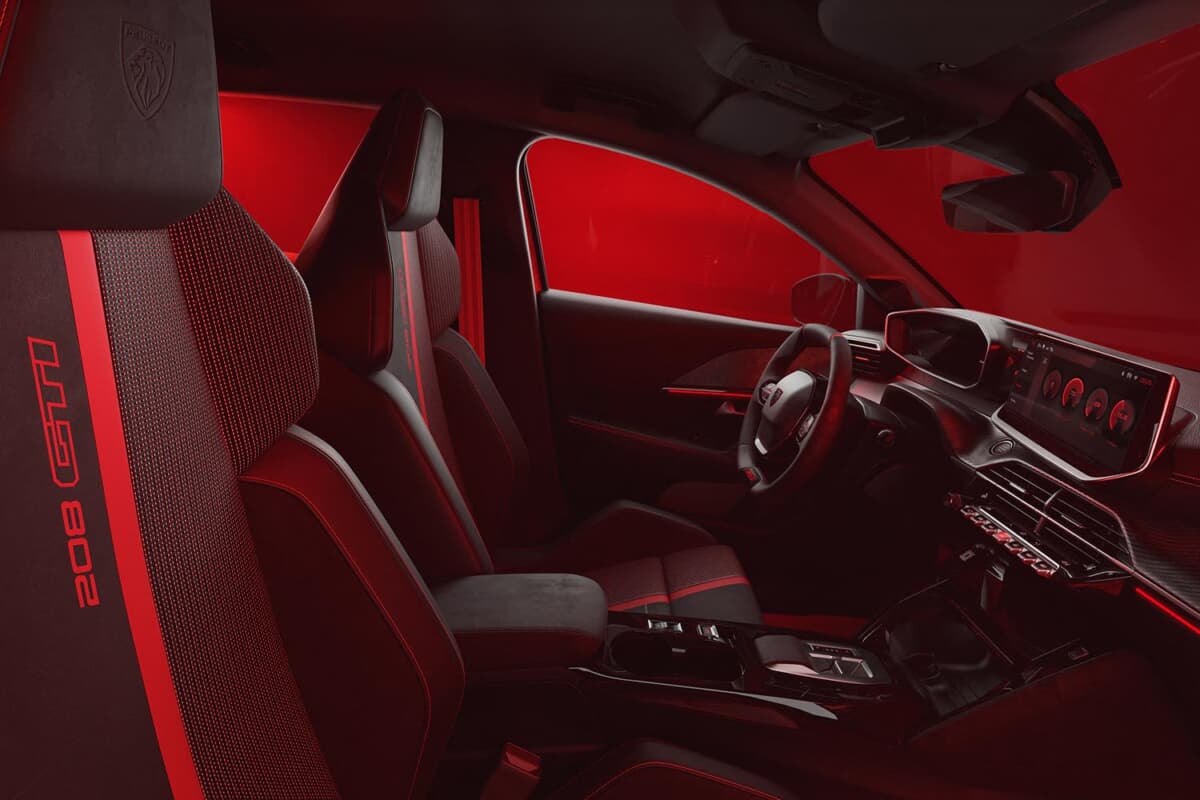 インテリアは赤を基調としたアクセントが随所に配され、GTiの伝統を感じさせる演出が随所に施されている。専用バケットシートには、205 GTiをオマージュした赤いセンターラインやメッシュパターンを採用。アルカンターラ素材のステアリングとともに、スポーティさと上質さを兼ね備える。