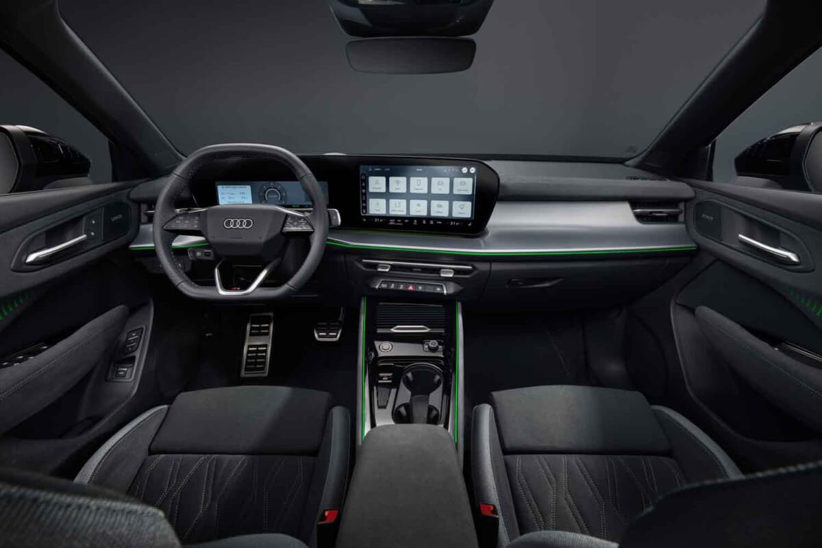 インテリアでは、フルサイズクラスと同等の装備が与えられた。12.8インチのMMIタッチディスプレイと11.9インチのメーターが一体となったパノラマディスプレイが、先進的なコクピットを構成。さらに2本の新設計ステアリングコラムレバーの採用により、センターコンソールの収納スペースが拡大されている。