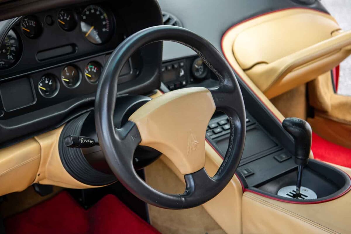 それを実現するため、当時ランボルギーニでチーフ・エンジニアを務めていたルイジ・マルミローリは、カウンタックで実現されたV型12気筒エンジンと5速MTを直列に接続。それを前後逆方向に搭載するというミッドシップ・レイアウトを継承した。