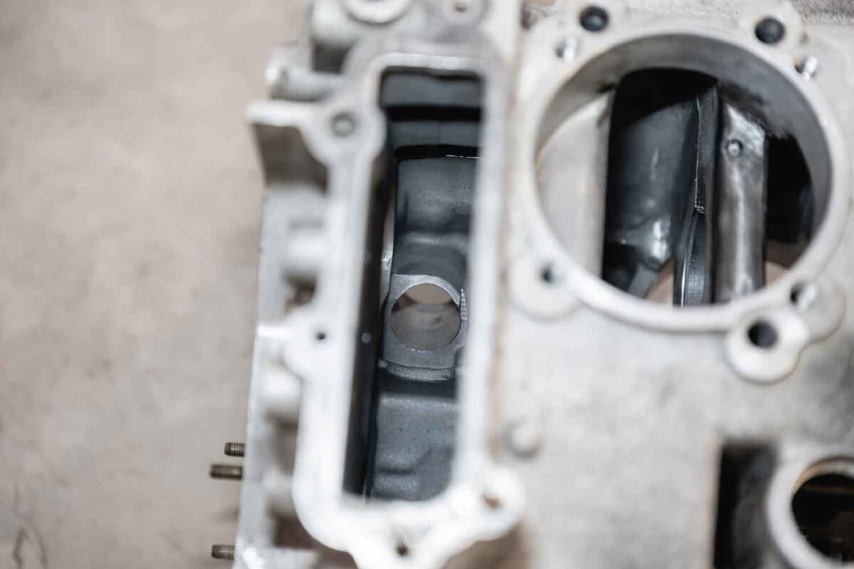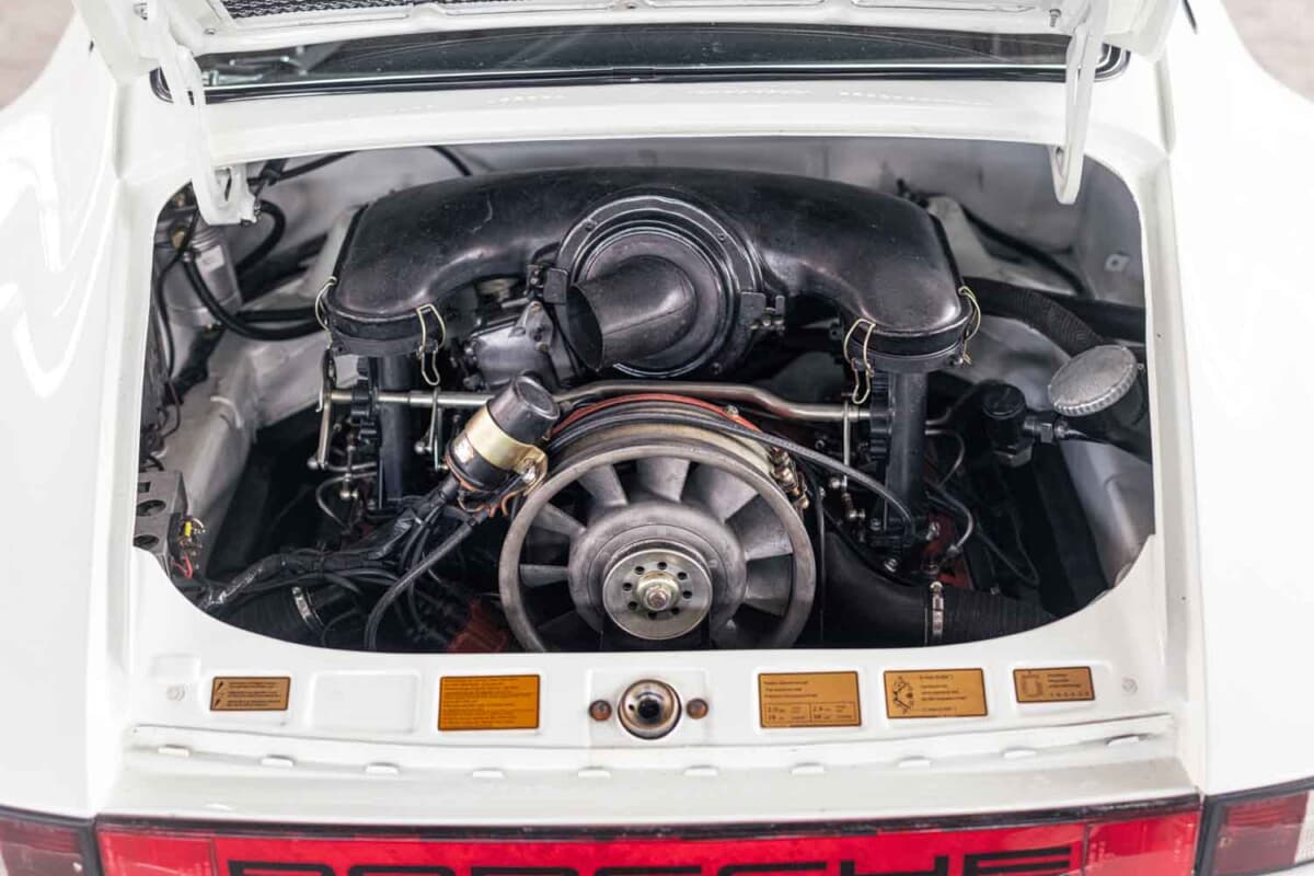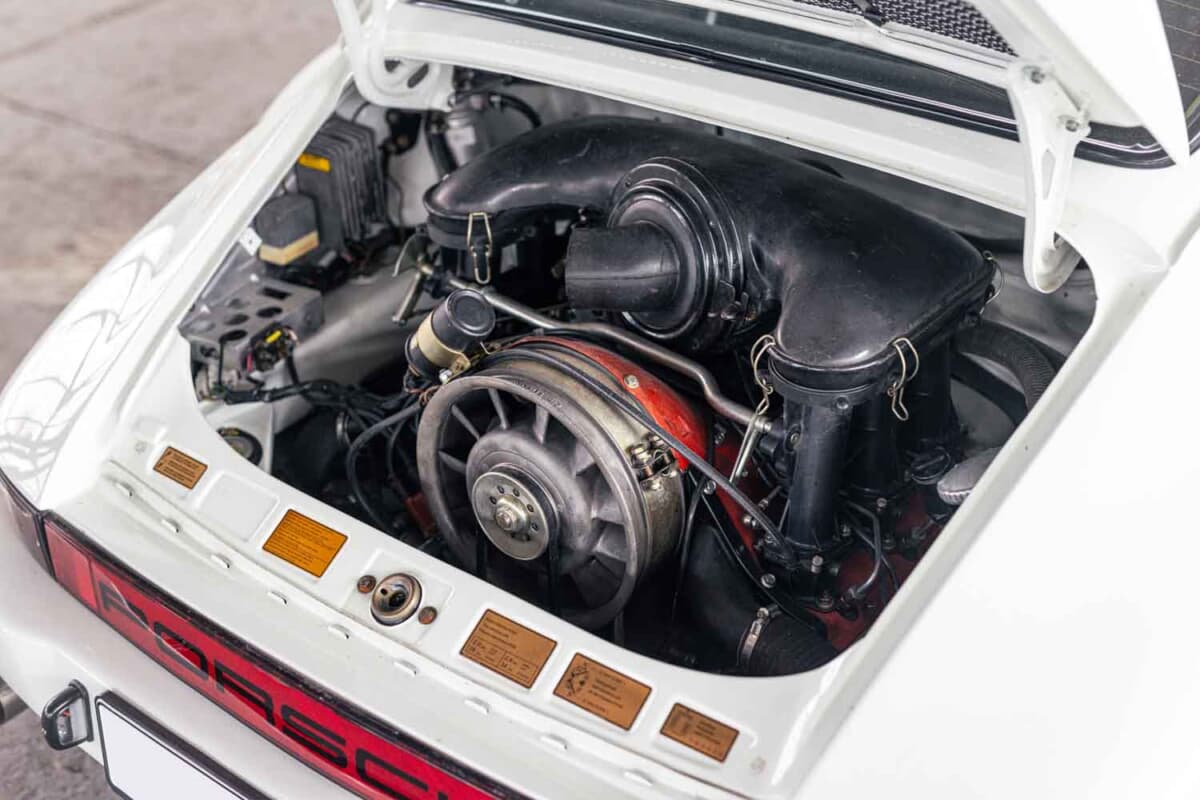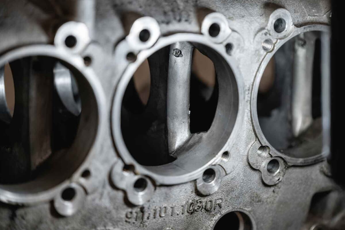 911カレラRS 3.0の魅力を端的に物語るのが、そのリアに搭載される3Lエンジンだ。軽量で高剛性なアルミニウム合金「シルミン」で製作されたクランクケースを採用し、内部構成はまさに911カレラRSRそのもの。最高出力は230psとされ、車重はわずか900kgという驚異的な数値を実現している。
