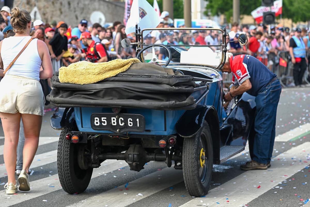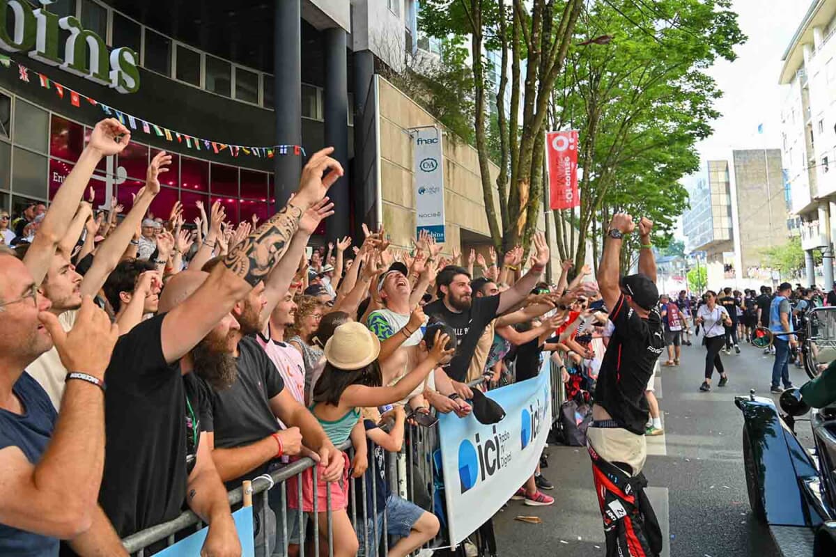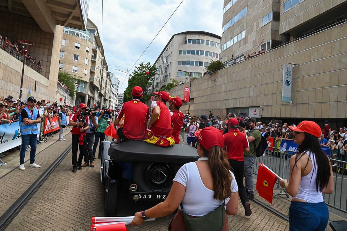 インタビューを終えてすぐに街のパレード会場へ向かったのですが、街は交通規制がかかっている上に、大勢のファンがドライバーを間近で観ようと詰めかけていたため、トラムに乗って向かいました。2024年はスリに何度もバッグに手を掛けられて危なかったので、今回はかなり用心しました。