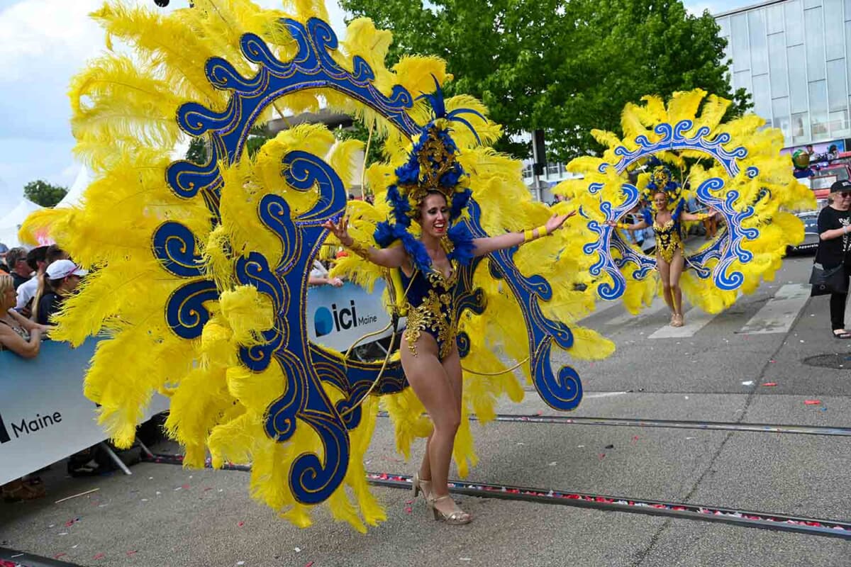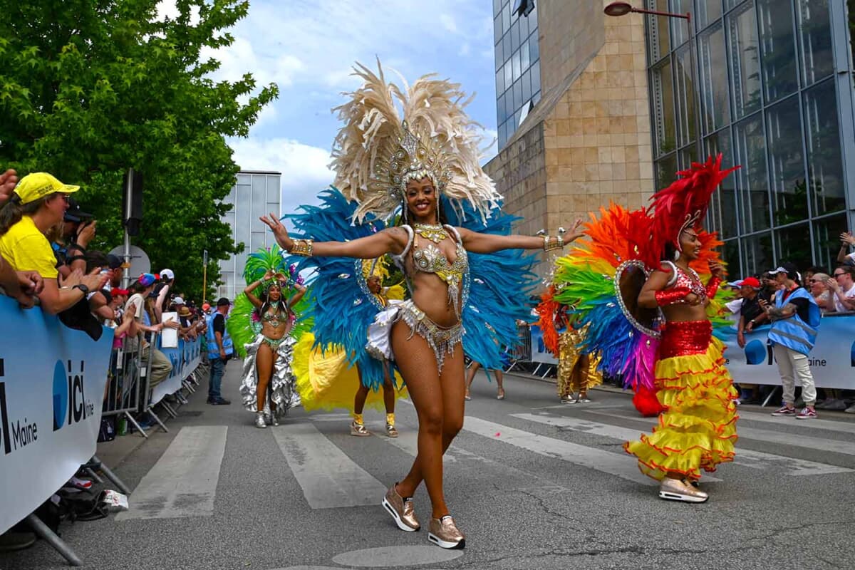 パレードはかなり(時間が)押してスタート。オフィシャルカーに続き、アメリカンなバイカーのグループやサンバ隊、スポンサー企業、ブラスバンド隊のみなさんらが、オープンのクラシックカーに乗ったドライバーらの間に次々と流れていきます。しかし、猛暑のなかのクラシックカーはたまにオーバーヒートをして停まって立ち往生したりもします。何度もエンジンをかけ直したり、みんなで押したりと、なかなか大変そうです。パレードのクルマはかなりのスロー走行なので歩いた方が速いほど。クルマから降りてファンサービスをしてくれるドライバーもいます。