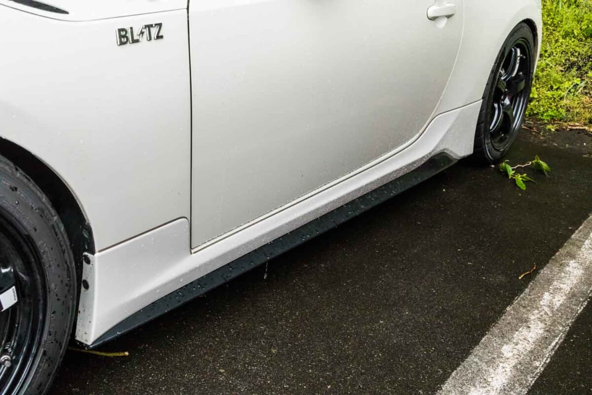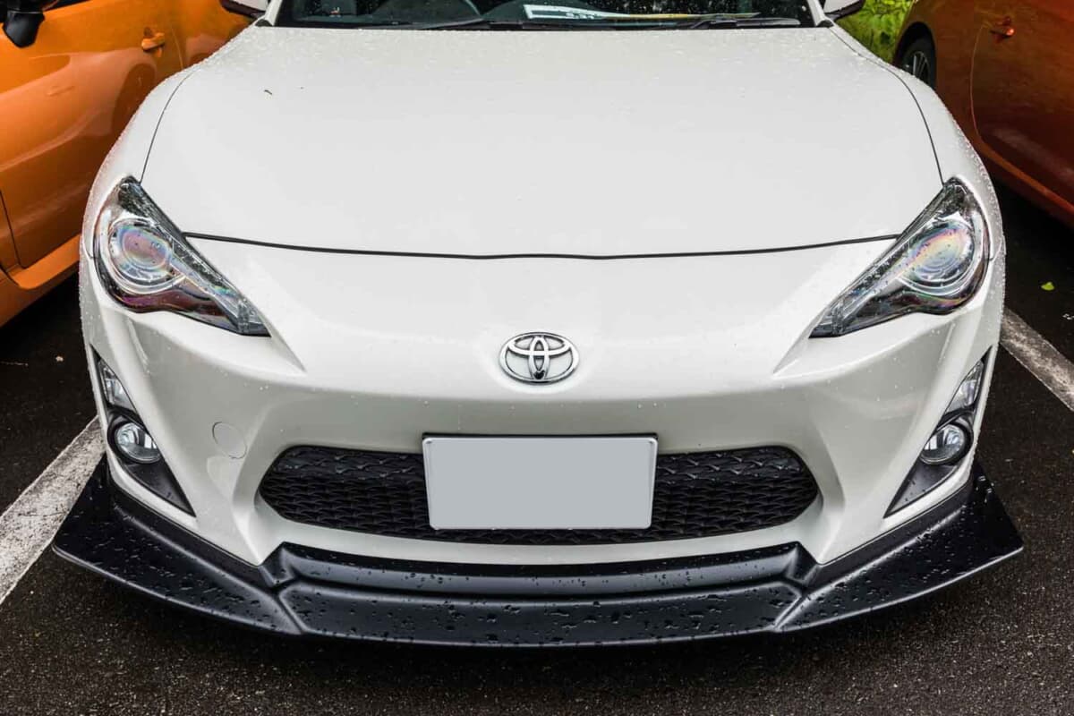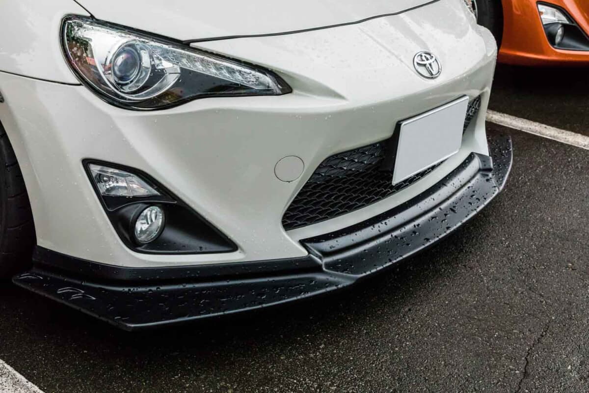 ボディまわりのカスタムも、しっかりと手が入っている。TRD製のサイド&リアスポイラーに、フロントの大型リップスポイラーはネットで購入したノーブランド品とのこと。