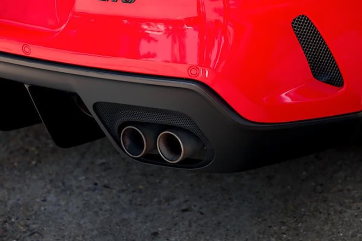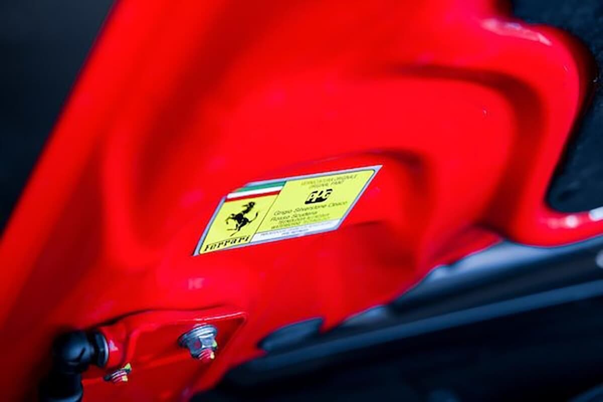 ピニンファリーナがデザインワークを担当したボディは、長いボンネットに小さなキャビン、盛り上がったフェンダー、攻撃的なスタンスを備え、まさに「スポーツカー」という言葉の真髄を体現。フロントのブレーキダクトやホイールアーチ後部のエアアウトレットなどのデザインディテールは、過去の偉大なフェラーリ製コンペティツィオーネを想起させるもので、テールエンドにはフェラーリのアイコンである丸型2灯テールランプが採用された。