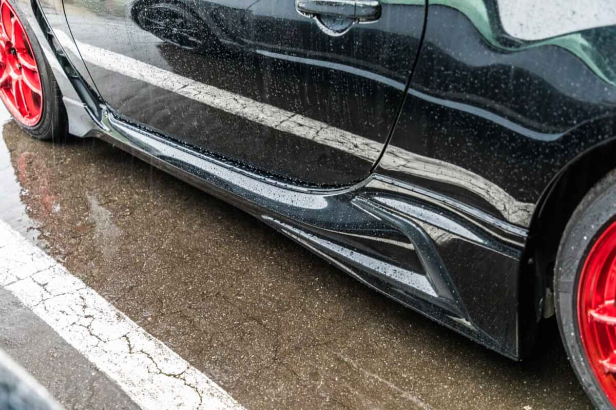 • トヨタ GR86:ブラックボディにはGRパーツのフロントスポイラー、サイドスカート、リヤバンパースポイラーを装着