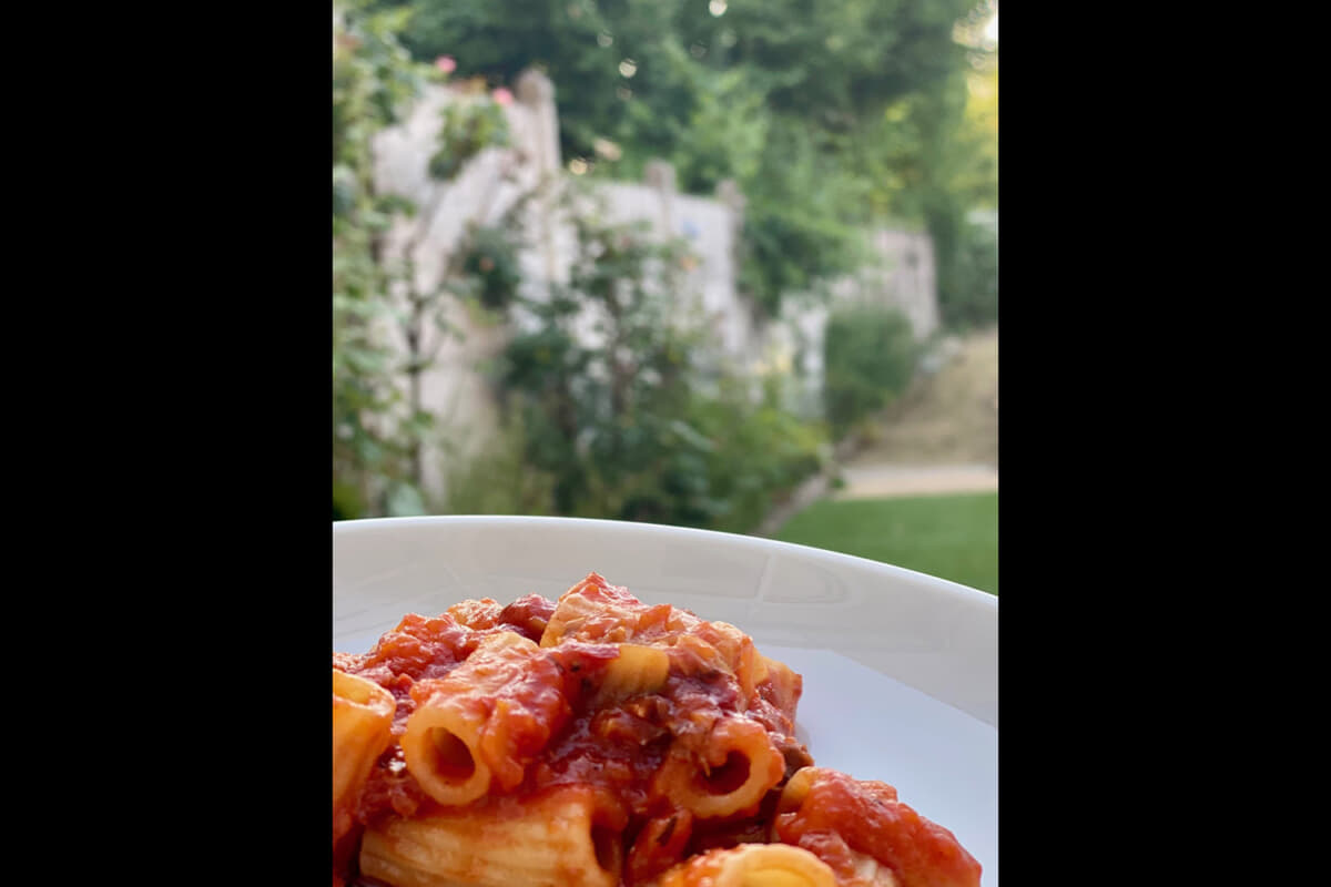 毎年お庭にはさまざまな種類のキレイなバラが咲いているのですが、2025年は晴れ続きで多くの植物がうまく育たなかったよう。今回の滞在中には少ししか鑑賞できなかったのが残念です。京都の町家に少し構造が似ていて、お家自体の間口は広くなく隣家とくっついている感じですが、うなぎの寝床と言いましょうか、奥行きが長い敷地で中庭がとても広いのです。そこには物干し場や家庭菜園、鶏も飼っていて、毎日産みたて卵が食べ放題なのです。