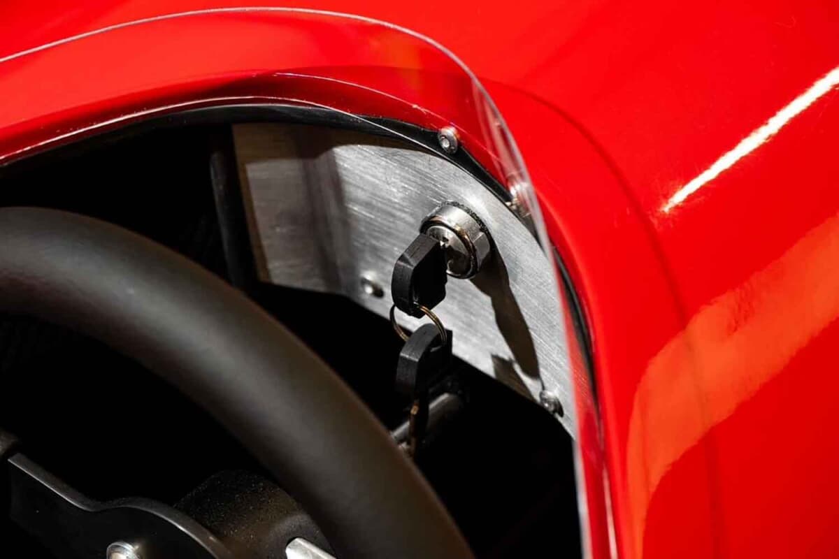 また、総ハンドペイントの塗装を施し、ジャン・アレジの駆ったカーナンバー28を模したこの個体は、全長3.1m×全幅1.62m×全高1.02mで、ドライバーを含む総重量約250kg。フルサイズの自動車工学を単純に縮小した設計を採用し、すべての部品が耐久性、信頼性、操縦性を向上させるように強化されている。