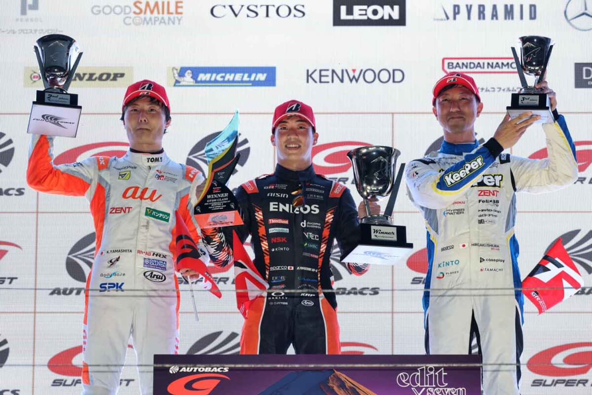 2位は山下選手(au TOM’S)。同チームにとって、ノーウェイト(第4戦は全車サクセスウエイトなし)でのレースで優勝を逃したのは2023年開幕戦・岡山以来である。3位にはKeePer CERUMOの石浦選手が入り、スープラ勢が表彰台を独占した。