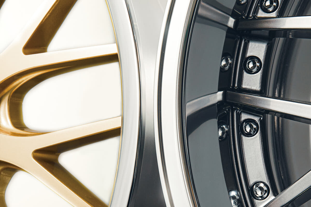 従来のカールリップはリムの深さは強調できるが、最外フランジのアピール感がやや弱くなる。それに対してスーパーフランジリムはスポーティもクラシカルにも振ったスタイリングにコーディネイトできる。写真のマーベリック709Mのリバースリム✕スーパーフランジリム。リムの主張がアップしてスポーティ感が増している(左のカールリップはプレーンな印象。一方、右のスーパーフランジリムは最外部にシャープなアクセントが付きスポーティだ)。