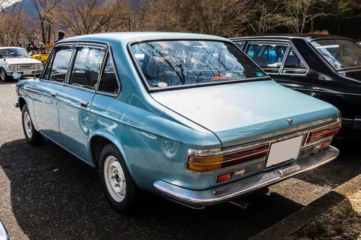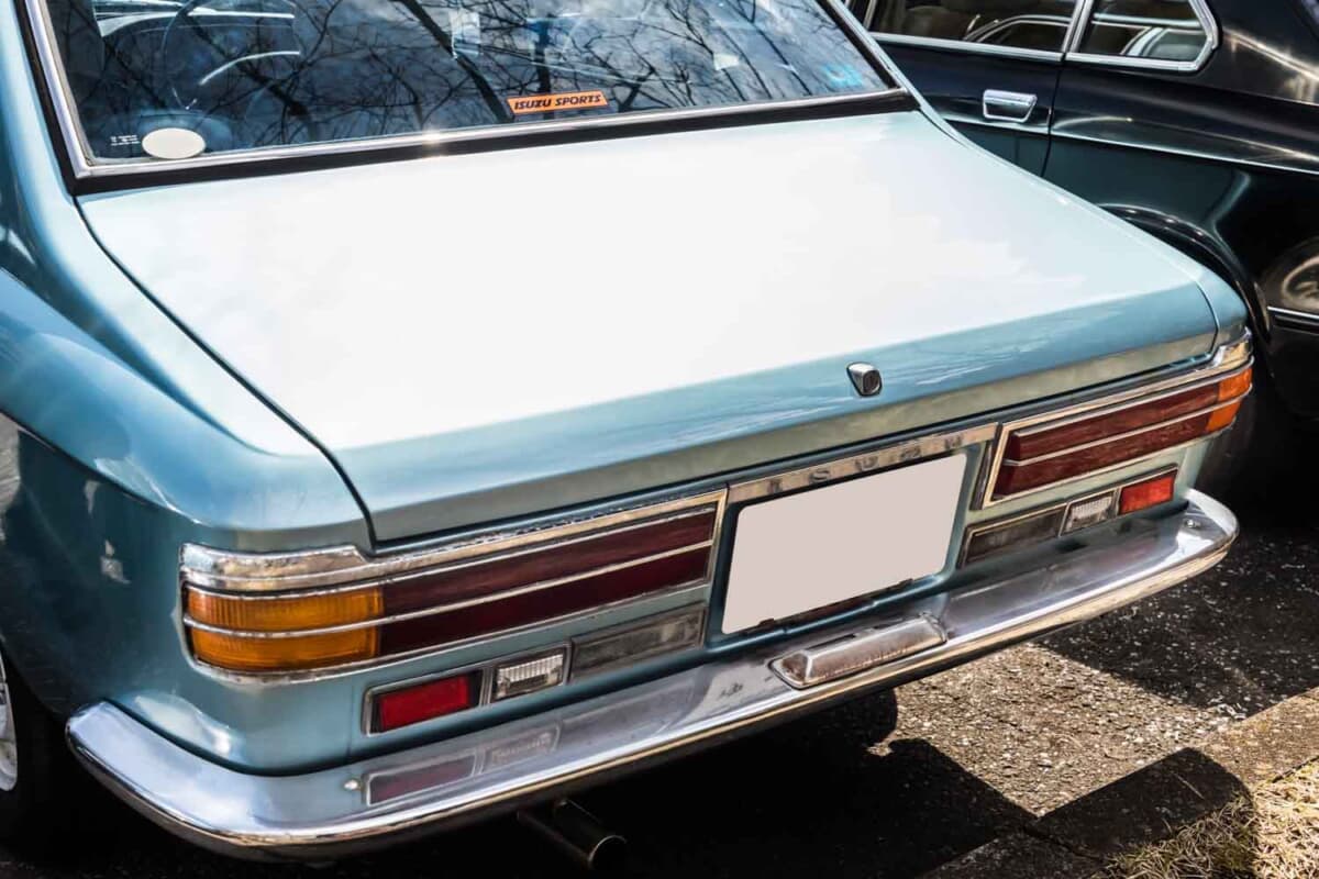 いすゞ車ばかりが集まるミーティング会場(駐車場)には、117クーペやベレットなど、数多くの有名なクルマが並んでいた。そんななかで会場に入ってくる段階から周囲の注目を集めていたのが、このブルーの4ドアセダンだ。いすゞ車ファンばかりの集まる場をざわつかせたこのクルマの正体は、いすゞの中型乗用車である「フローリアン」。