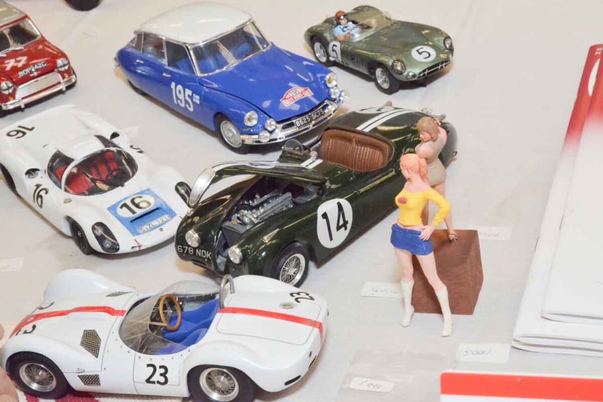 自動車専門誌などで活躍するイラストレーターである溝呂木陽さんは、模型好きとしても知られているこのイベントの常連だ。ブースでは、毎回自ら製作したプラモデルや、自身が出版しているクルマの画集、自動車模型の雑誌などを展示・販売している。並べられたプラモデルの作例は、そのほとんどが1/24スケール。タミヤのミニはブロードスピードカラー、レベルのジャガー「XK120」はル・マン仕様、エブロのシトロエン「DS19」はモンテ・カルロ・ラリー仕様に仕上げるなど、キットをそのまま組み立てるのではなく、一手間加えたカスタマイズが素敵だ。