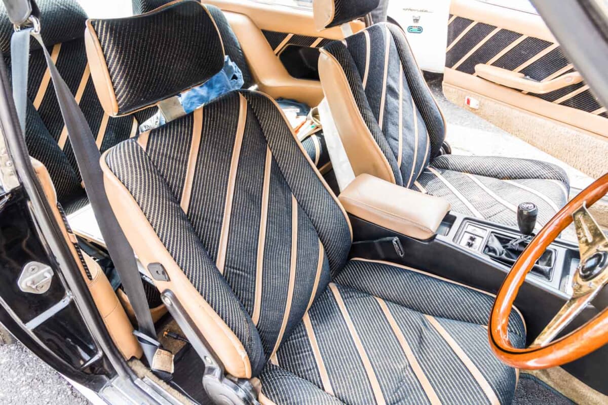 ジウジアーロカスタムは、最終モデルとなった1980年に117クーペを手がけたデザイナーの名を冠して登場した特別仕様車で、ブラックボディにブラック&ベージュの専用内装を備える。ダッシュパネルやセンター肘置きなどもベージュの革張りとなるなど、豪華な仕立てが特徴だ。