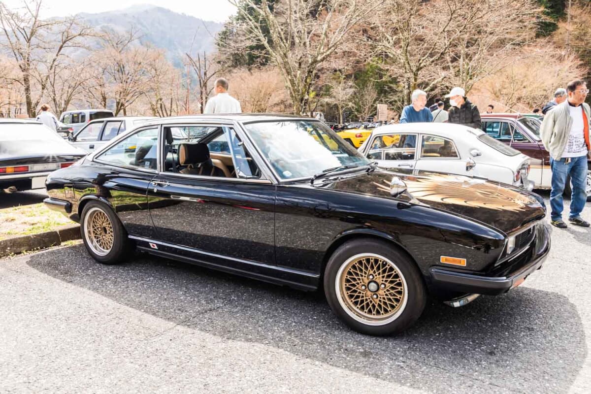 奥多摩周遊道路には、日曜早朝に多くのクルマが集まります。毎月第1日曜日は、いすゞ車が数多く集まるという噂を聞き、ミーティング会場に潜入しました。この日も多くのいすゞ車が駐車場を埋め尽くしましたが、そのなかでひときわ存在感を放つ117クーペを発見。真っ黒なボディにゴールドを効かせたコーディネイト、そして内装もスペシャルな1台でした。