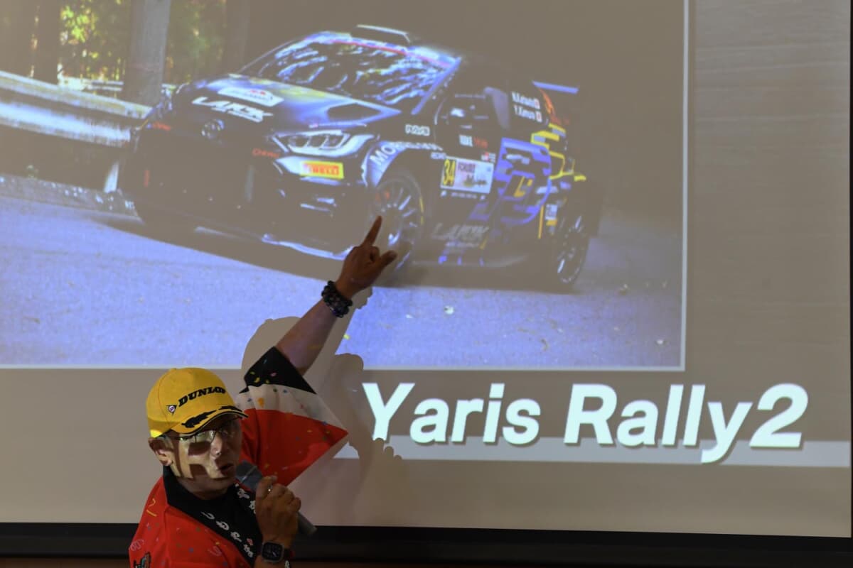 参加者たちは、2台のマイクロバスで「豊田市下山保健福祉センター まどいの丘」へと移動。ツアーは、勝田選手によるラリートークからスタートしました。