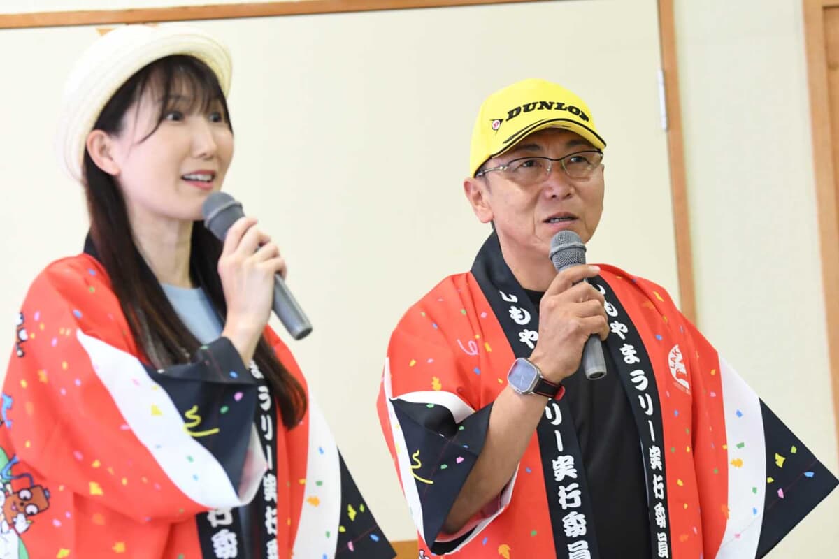 また、「まどいの丘」の駐車場は翌日の「豊田しもやまラリー」のサービスパークにもなっており、トークショー後には勝田選手の父であり、「豊田しもやまラリー」を主催するM AUTO SPORTS CLUB代表・勝田照夫氏も加わり、実際にラリー車両を間近で見学することもできました。