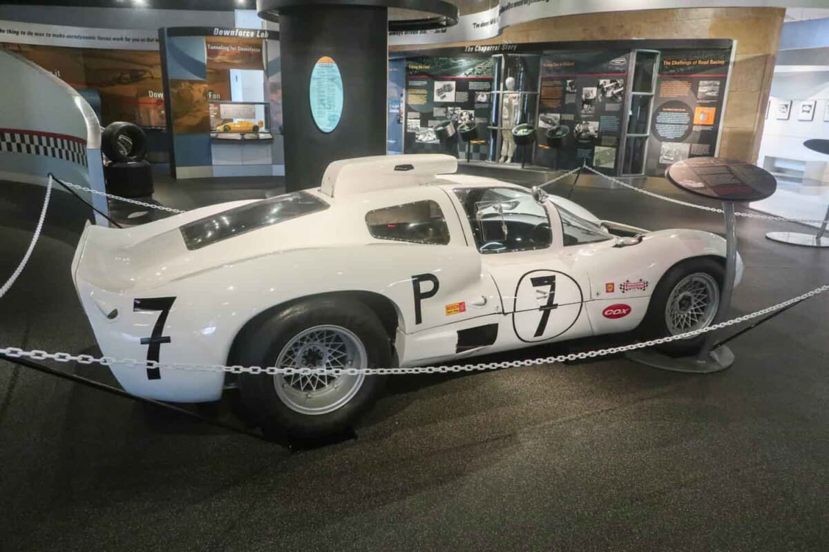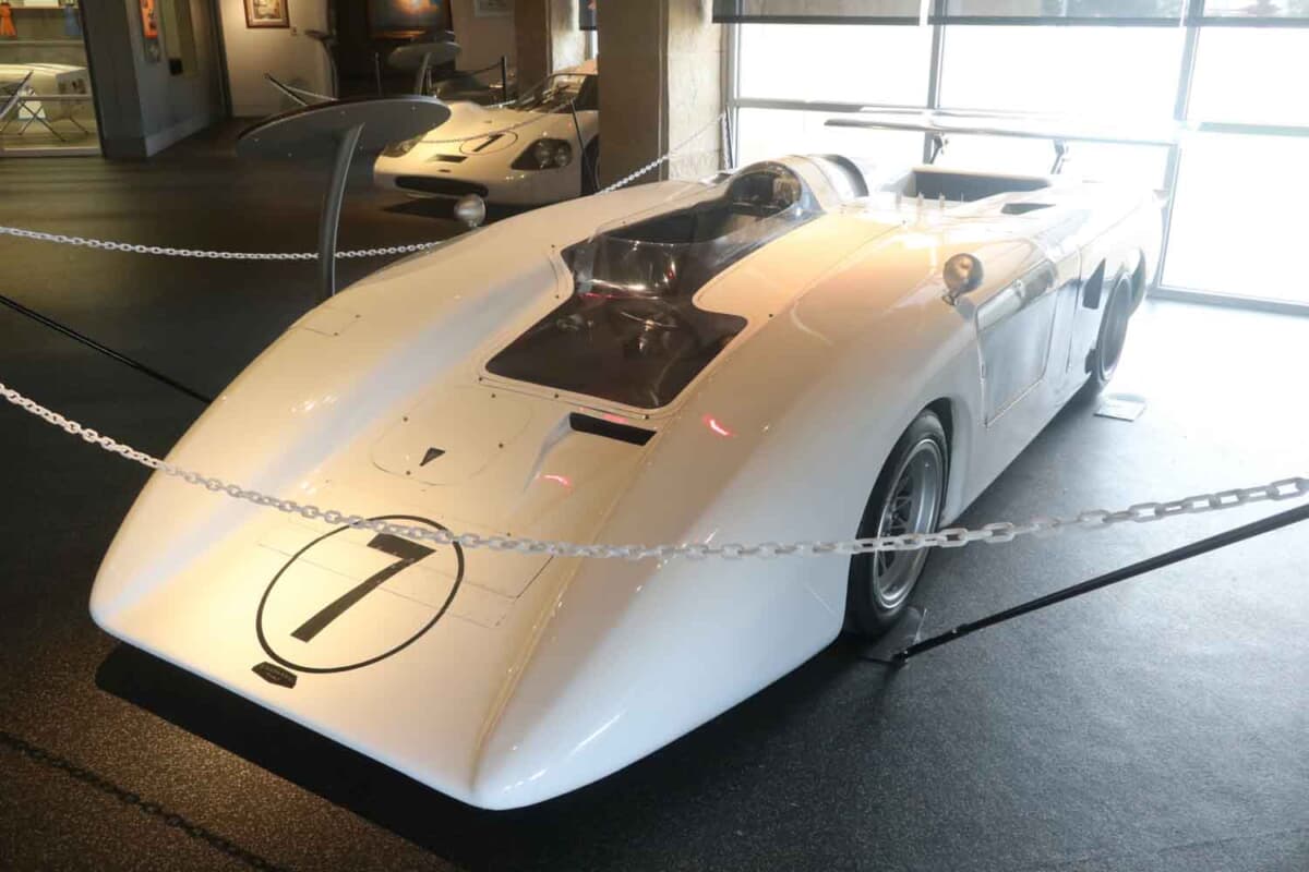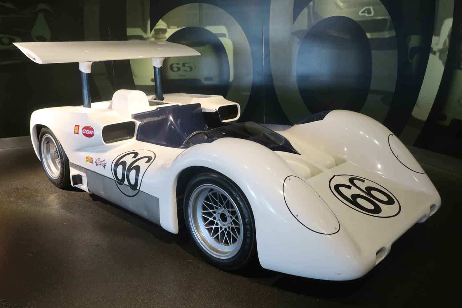 最初のオリジナルマシン、1963年のシャパラル2(2Aとも呼ばれる)から、FIAの国際スポーツカー選手権に参戦したクローズドボディの2D、リアウイングを高く掲げた2E、空気抵抗を極力抑えた2H、ファンで空気を排出しダウンフォースを生み出す2Jなど、昔、雑誌で見かけたシャパラルの多くが一望でき、一瞬にしてモチベーションはMAXとなったのだ。