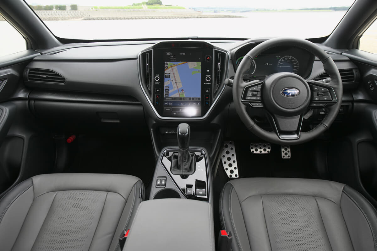 試乗したのは、最上級グレードのクロストレックプレミアム S:HEV EX。最新鋭の運転支援システムであるアイサイトXを標準装備しているモデルだ。有料色のボディカラー、クリスタルホワイト・パール(3万3000円)。そして本革シート、アクセサリーコンセント(15万4000円)のオプションを装着し424万500円という仕様だ。