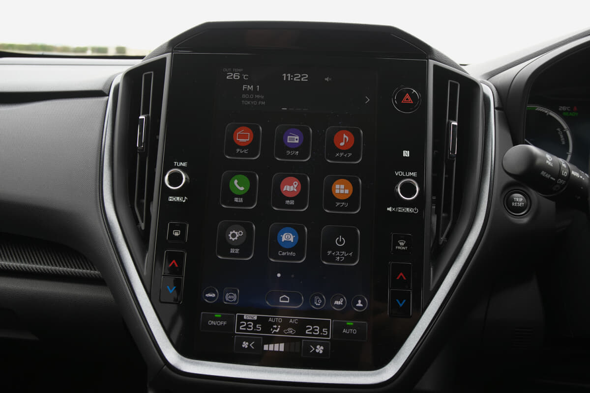 • スバル クロストレックS:HEV:11.6インチの縦型ディスプレイでエアコンをはじめ様々な操作が可能