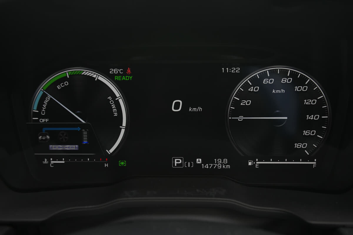 • ストロングスバル クロストレックS:HEV:ハイブリッドは、液晶パネルを採用。表示はアナログ式のメーターデザインとなっている