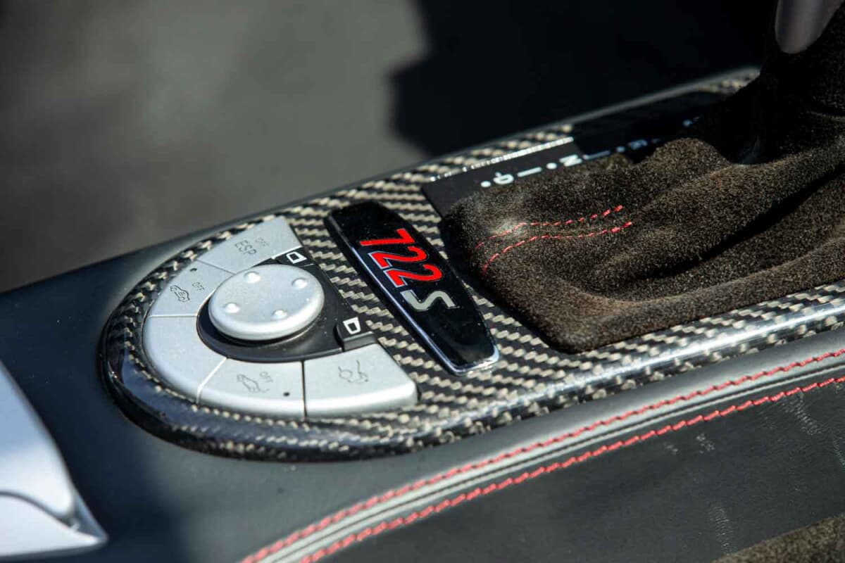 722Sロードスターは5速ATを組み合わせ、0→100km/h加速は3.8秒、0→200km/h加速は10.6秒を実現した。出品車は2009年式で、走行距離は1万7000km弱。全サービス記録が残されており、最新の整備は2025年6月にマクラーレンMSOで実施されている。MoT検査は2026年6月10日まで有効だ。