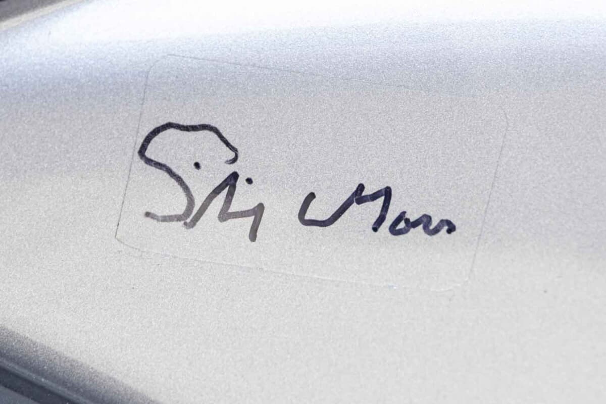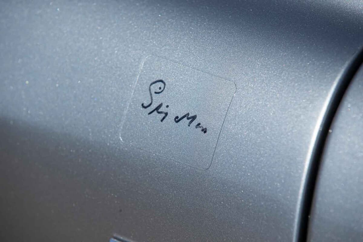出品車の価値をさらに高めているのは、1950年代にメルセデスのワークスドライバーだったスターリング・モスの直筆サインが残されていることだ。ボナムスによれば、モスがこの車両にサインをする様子を収めた動画もUSBメモリーで付属するという。