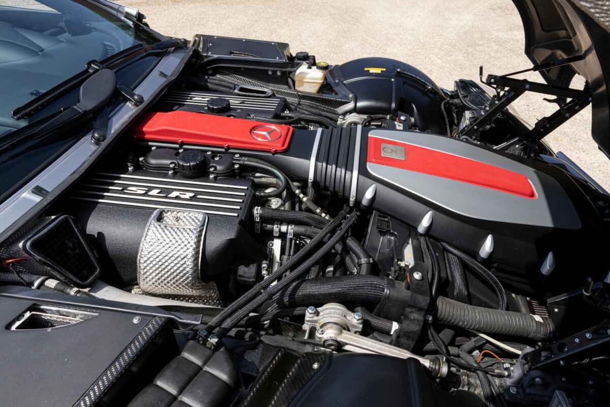 ロングノーズにコンパクトなキャビンという特徴的なスタイルを持つSLRマクラーレンには、当初5439cc V型8気筒スーパーチャージャー付きエンジンが搭載され、最高出力は626psを誇った。さらに顧客からの要望に応え、2006年には650ps仕様の「722エディション」を追加。翌2007年にはオープントップの「ロードスター」が登場した。