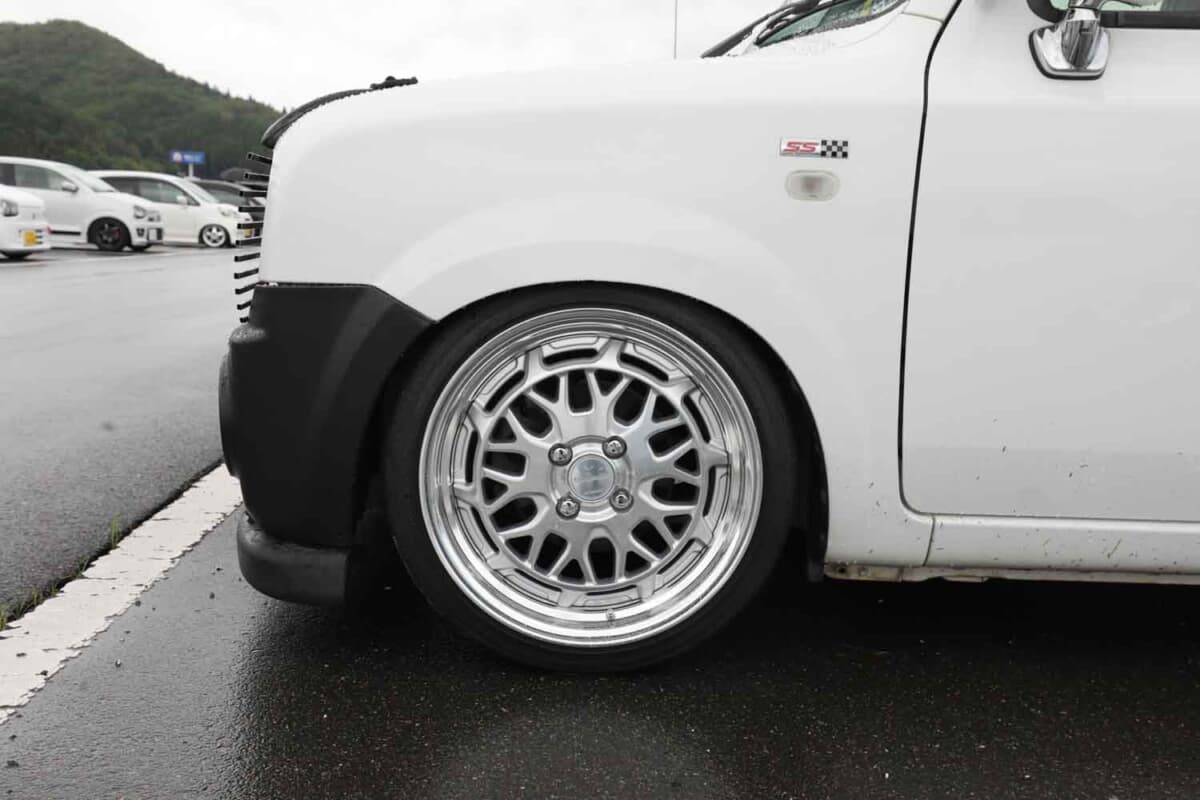 お金をかけず、創意工夫でお気に入りを作ることこそが、自分のスタイルなのだ。足もとにはワーク・シーカーMXの16インチホイールを装着。インパクトのあるディスク形状が、アメリカン鍛造ホイールを彷彿とさせる存在感を放っている。