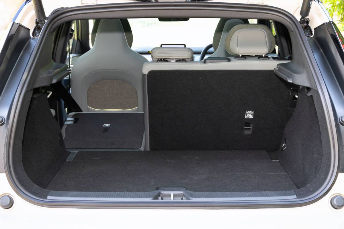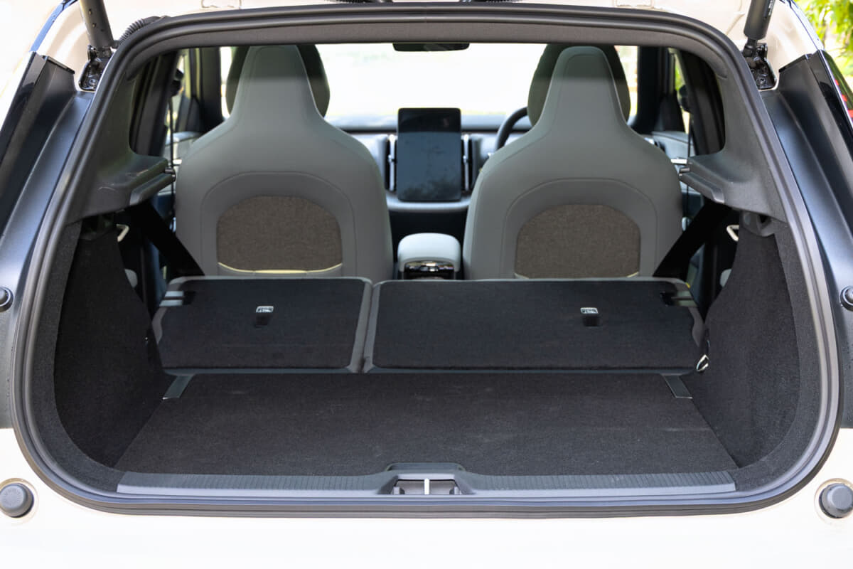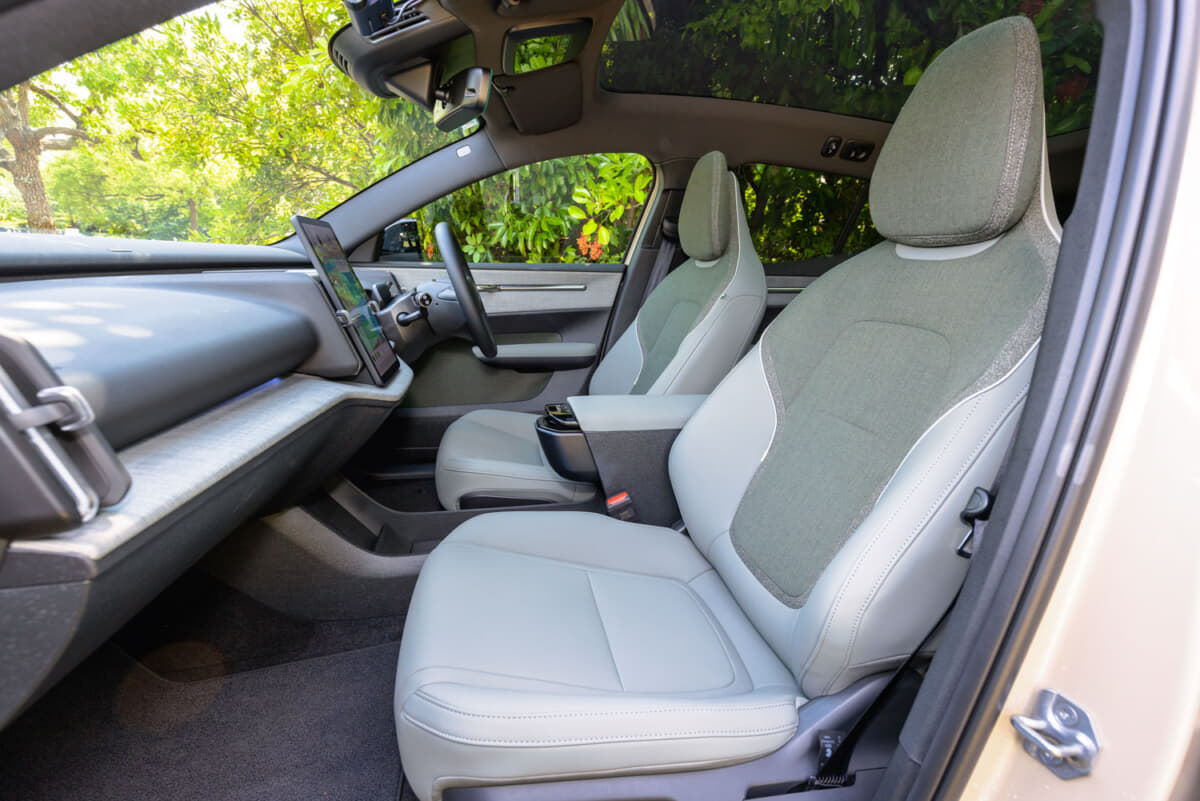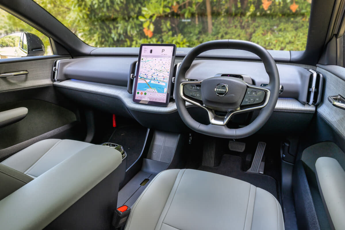 EX30のボディサイズは全長4235×全幅1835×全高1550mm。つまり、都市部や山間の狭い道での扱いやすさはもちろん、パレット式立体駐車場への入庫もできる。エクステリアデザインはクリーンで洗練されたもので、インテリアもまたスカンジナビアデザインがちりばめられたセンスのいい空間に仕上げられている。