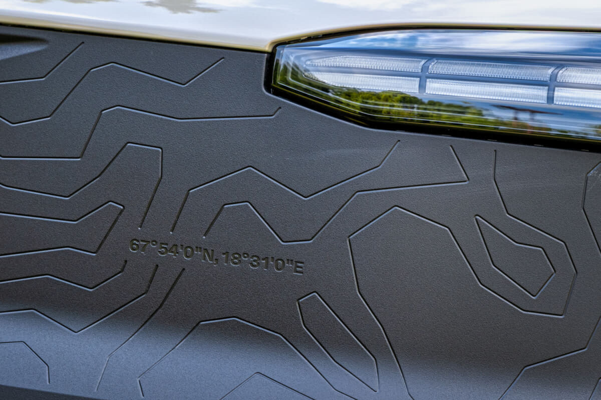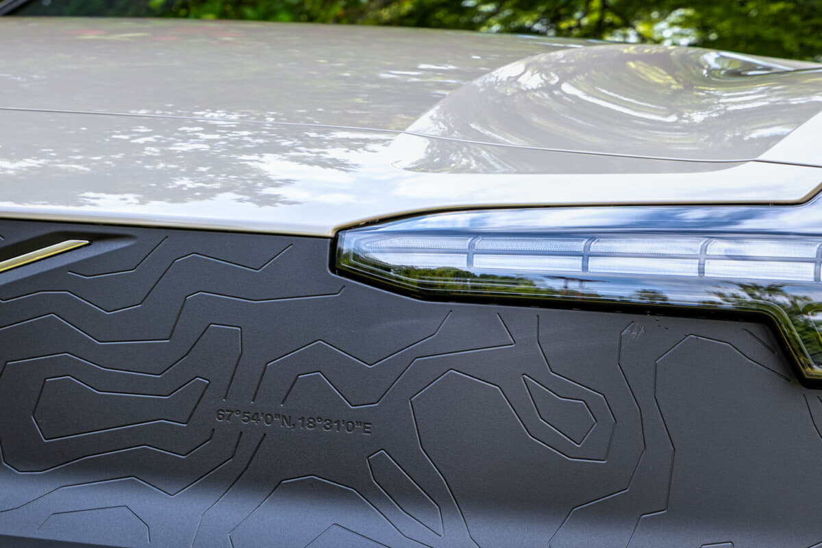 • EX30 Cross Country Ultra Twin Motor Performance:フロントグリルの数字は、スウェーデン最高峰のケブネカイセ山の緯度だ